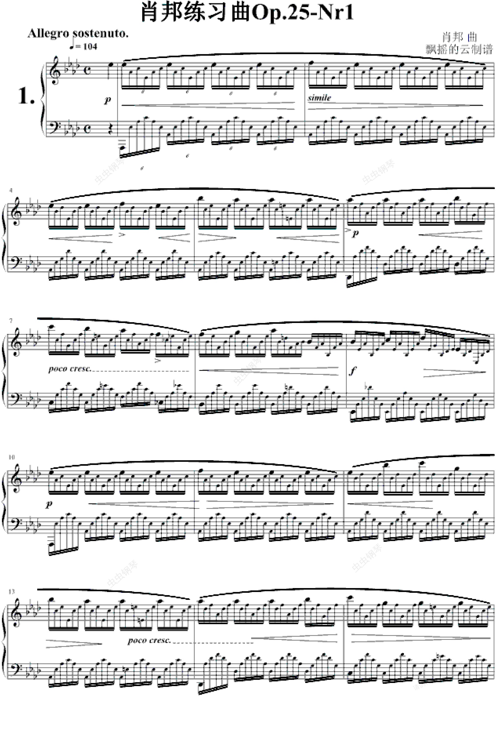 钢琴谱:肖邦练习曲Op.25-Nr1