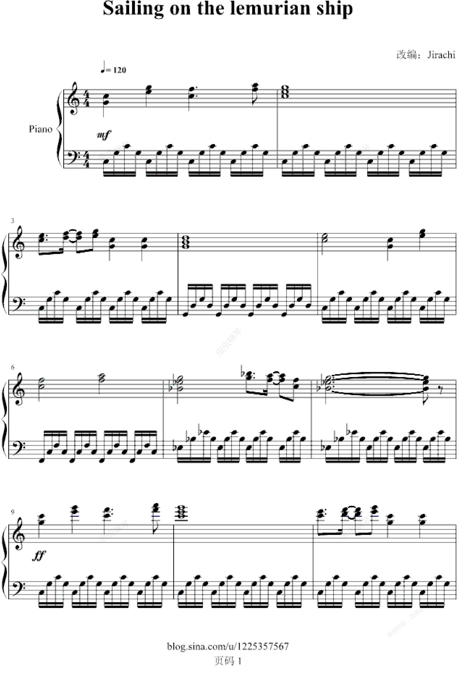 钢琴谱:Sailing on the lemurian ship