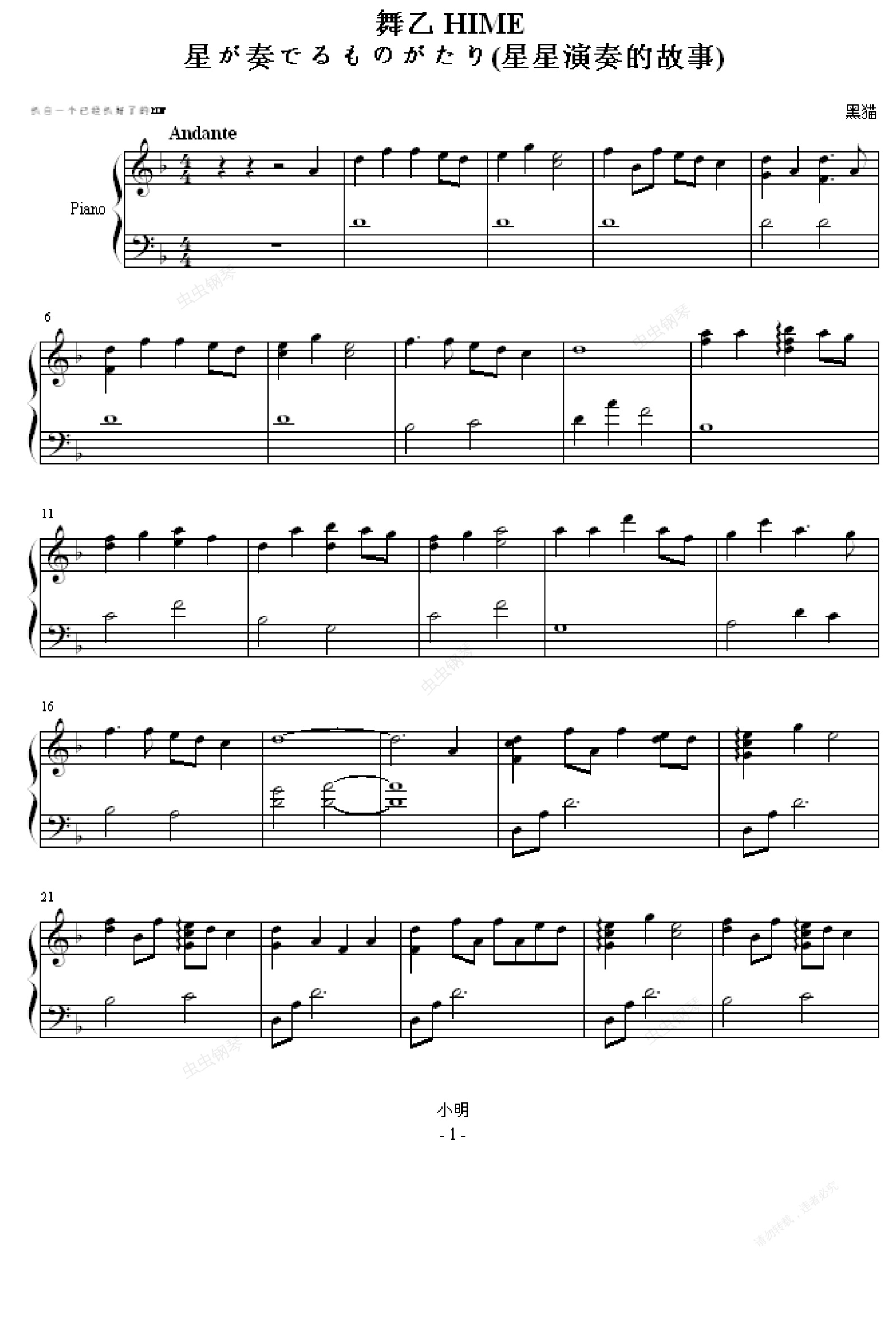 钢琴谱:星が奏でるものがたり-(星星演奏的故事)