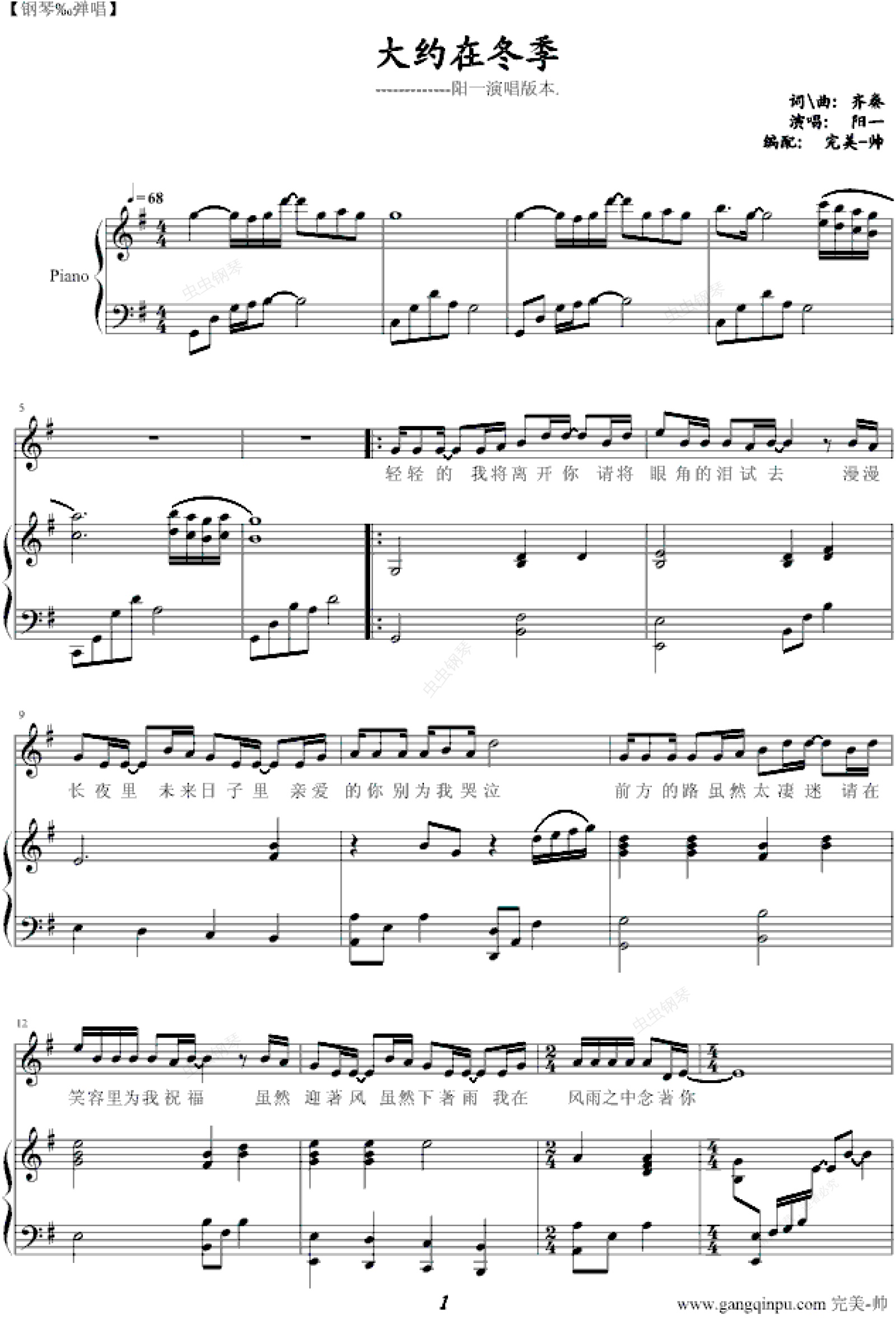 钢琴谱:大约在冬季-钢琴弹唱版