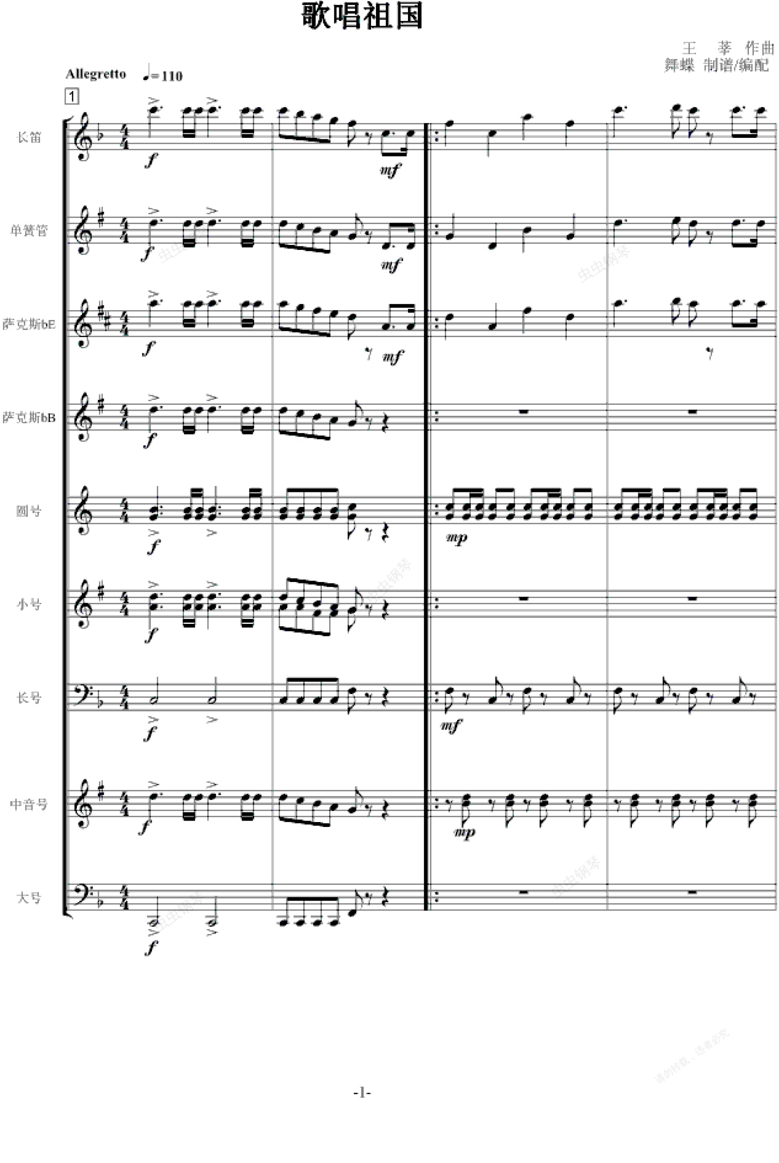 这是我们管乐队排演的曲目。使用插件将midi转录为wma格式放在了“原谱试听”里,效果还不错吧。