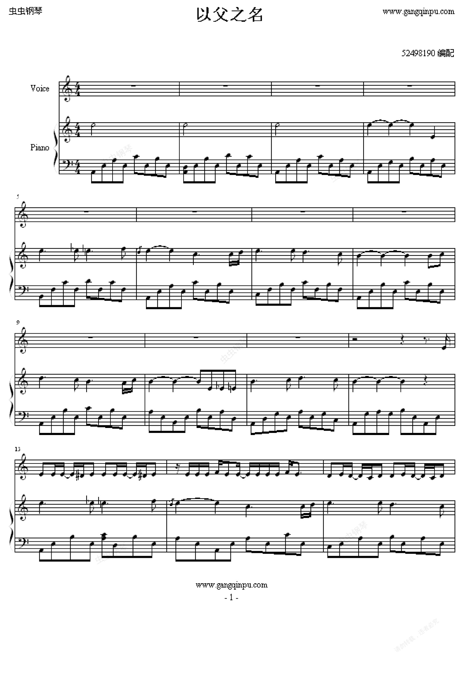 钢琴谱:以父之名