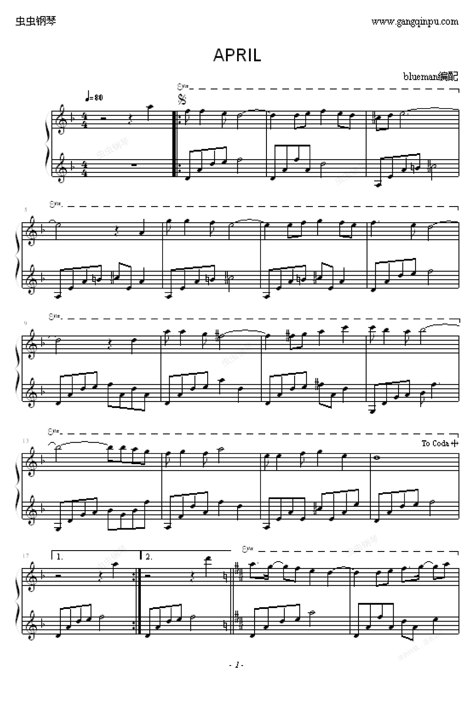 钢琴谱:人间四月天 - 我等候你