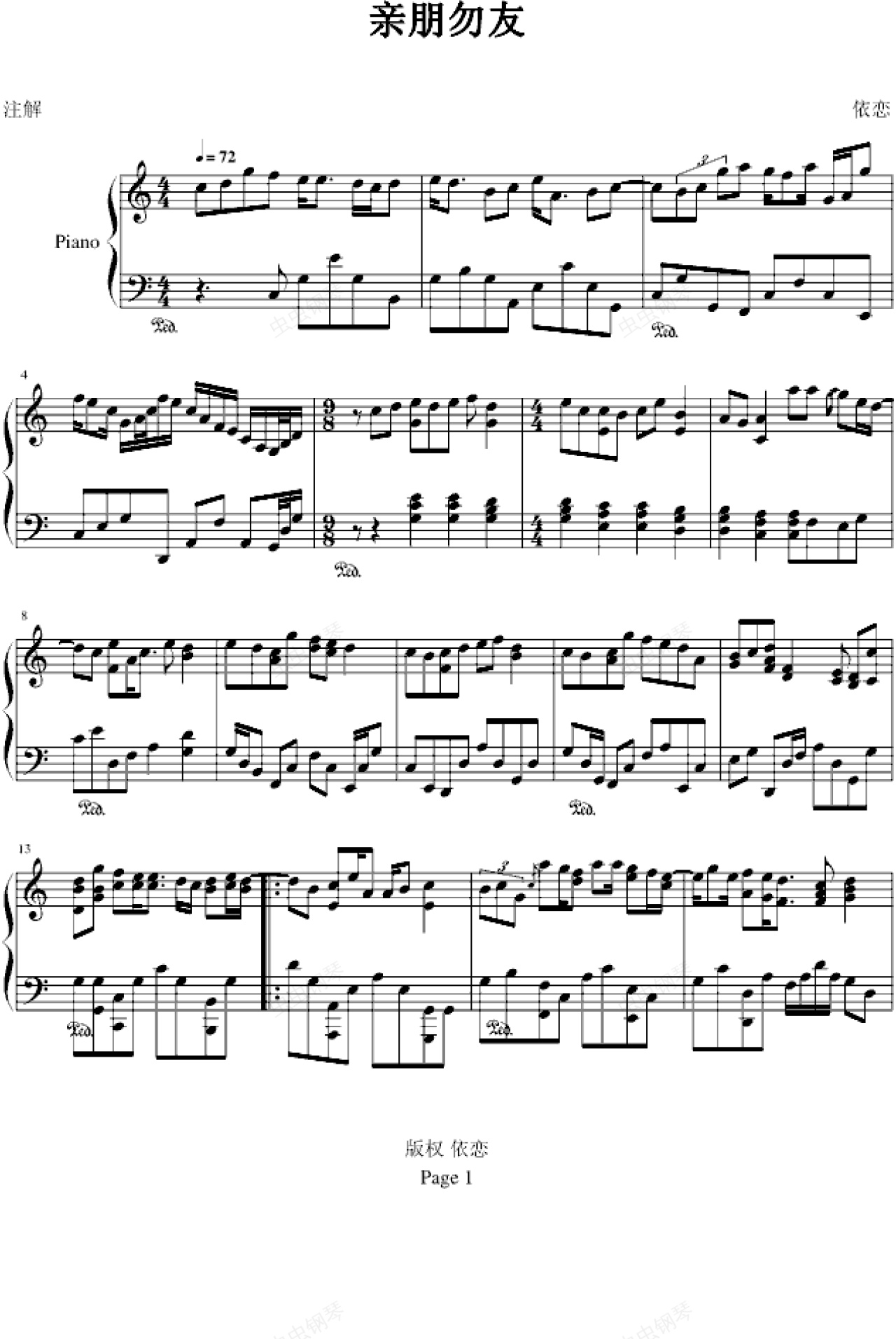 原来一直在流行钢琴网发表,为广大钢琴爱好者需要,现在在虫虫钢琴网也一起发表!我为原创编配作者,请尊重版权!