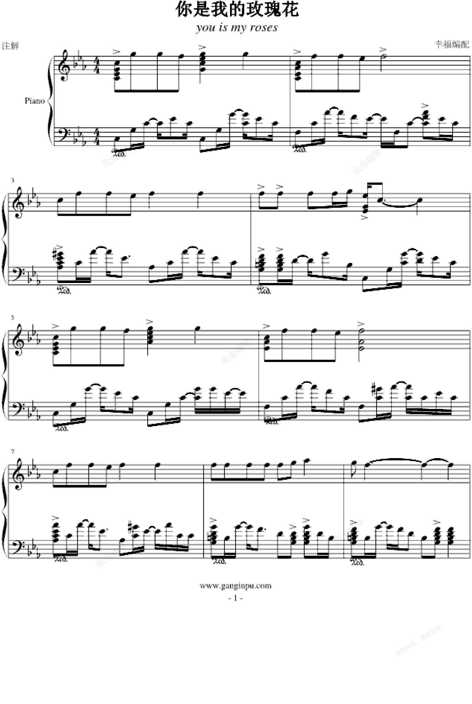 钢琴谱:你是我的玫瑰花