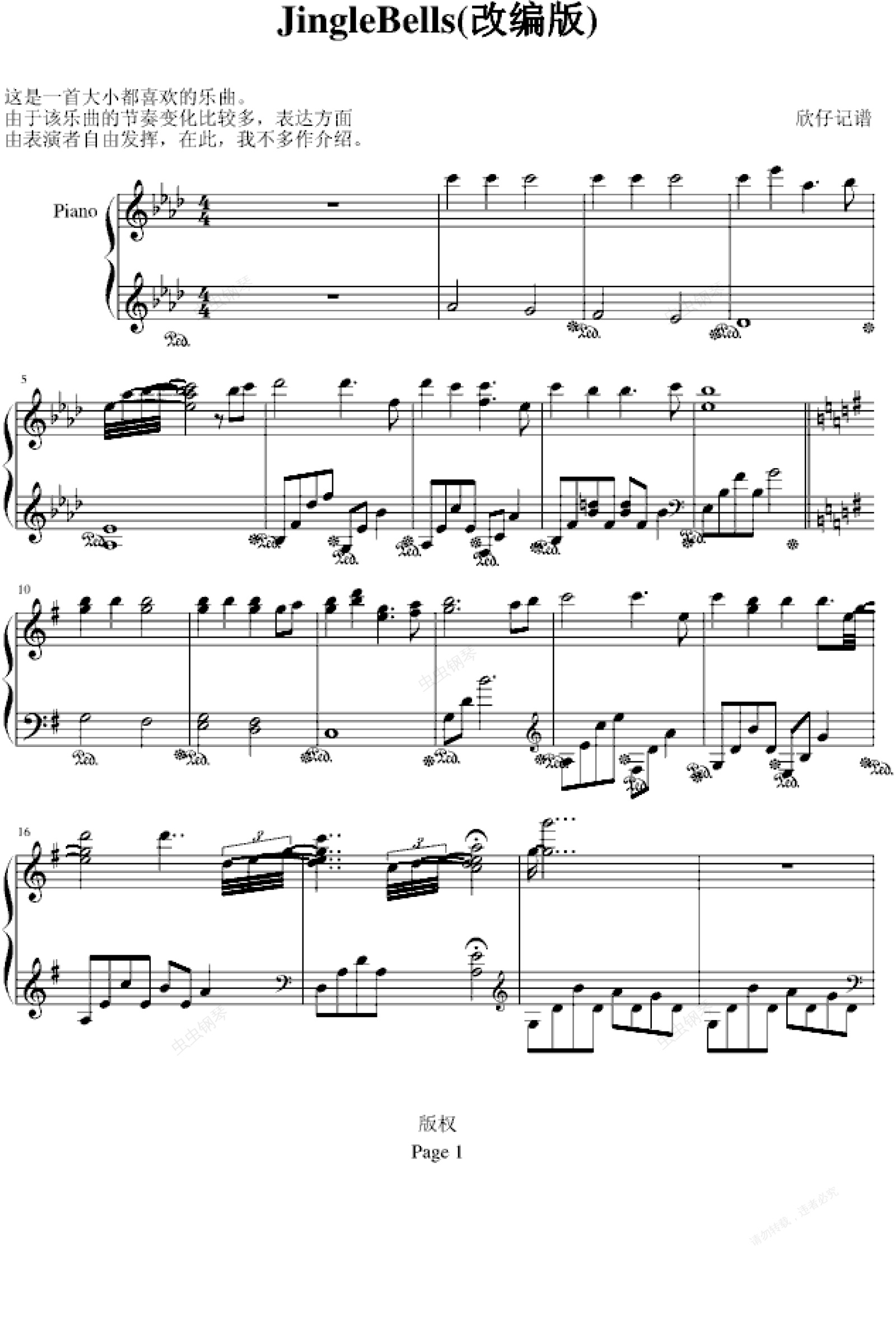 钢琴谱:JingleBells-流行曲风