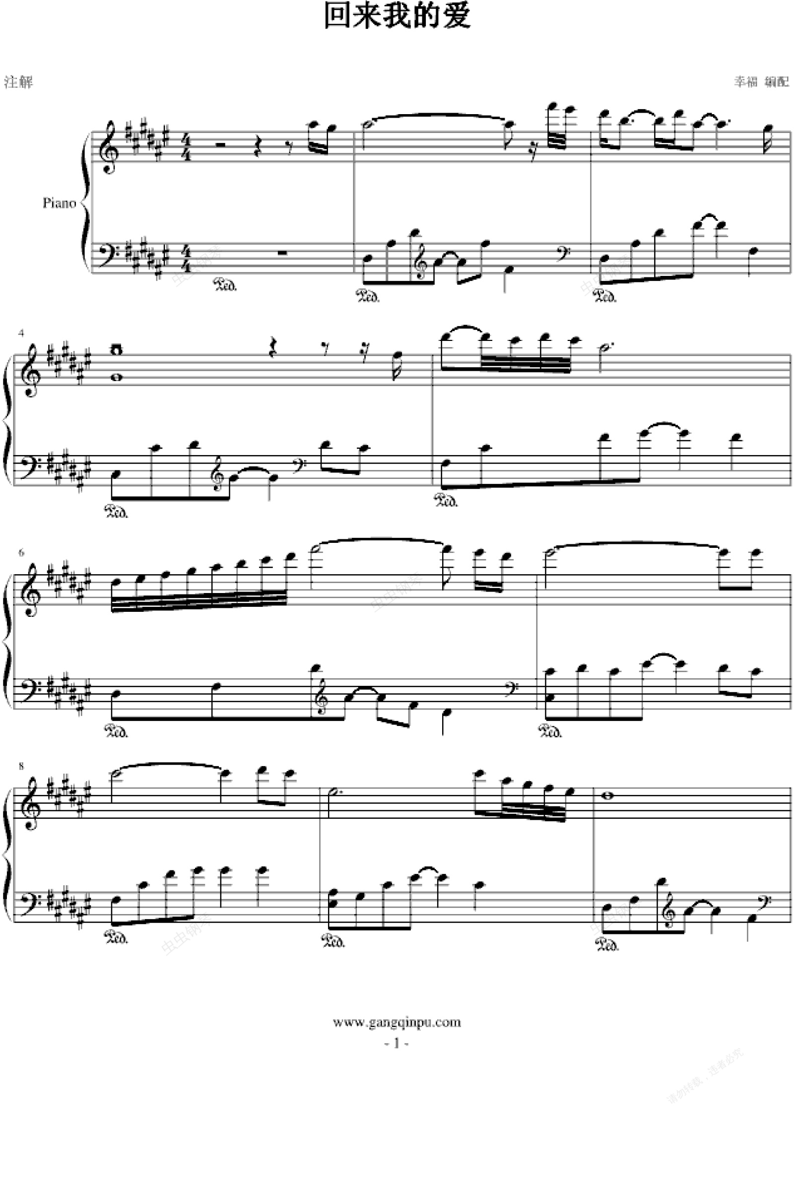 您的位置: 首页 > 钢琴谱库 > 回来我的爱