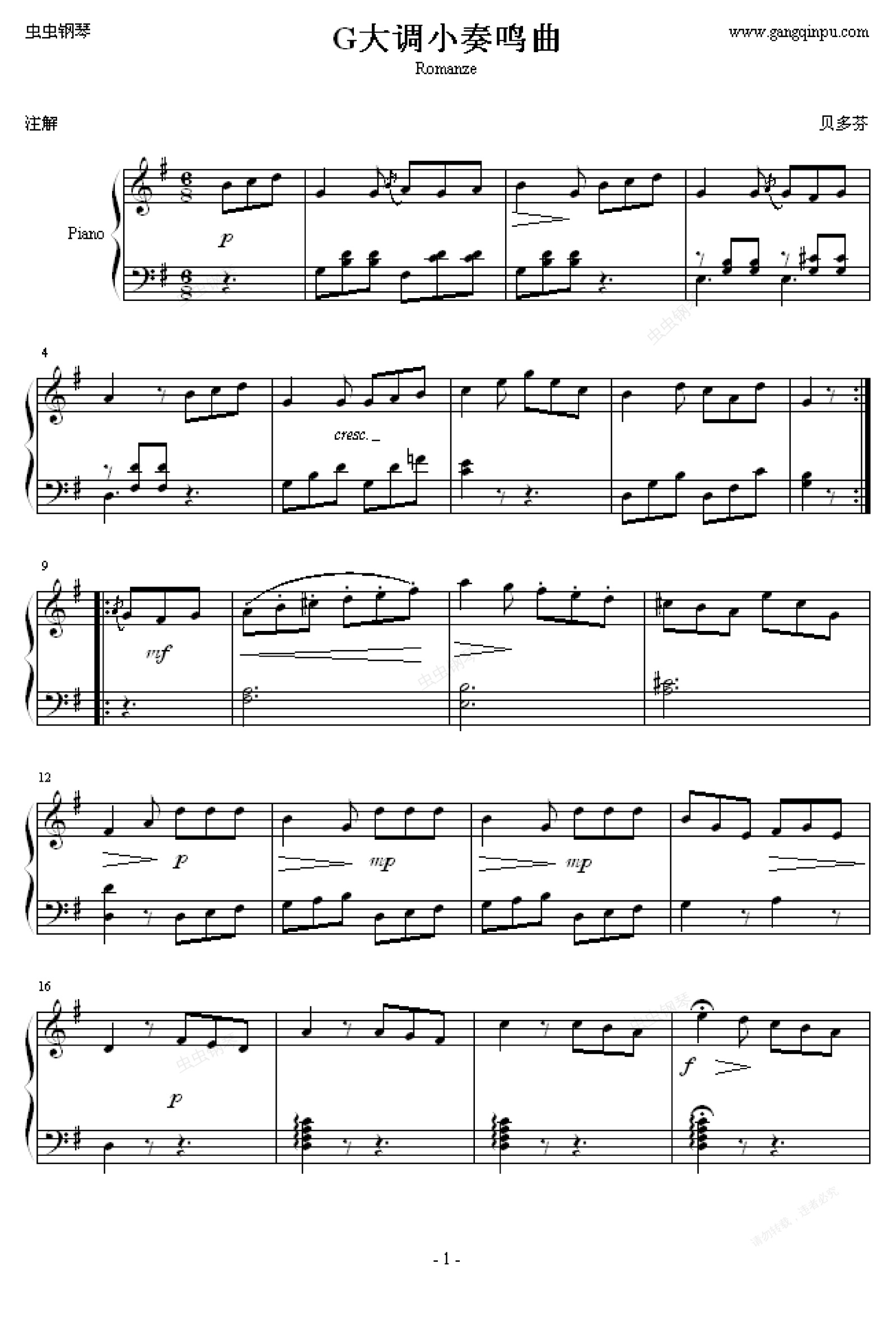钢琴谱:G大调小奏鸣曲Romanze