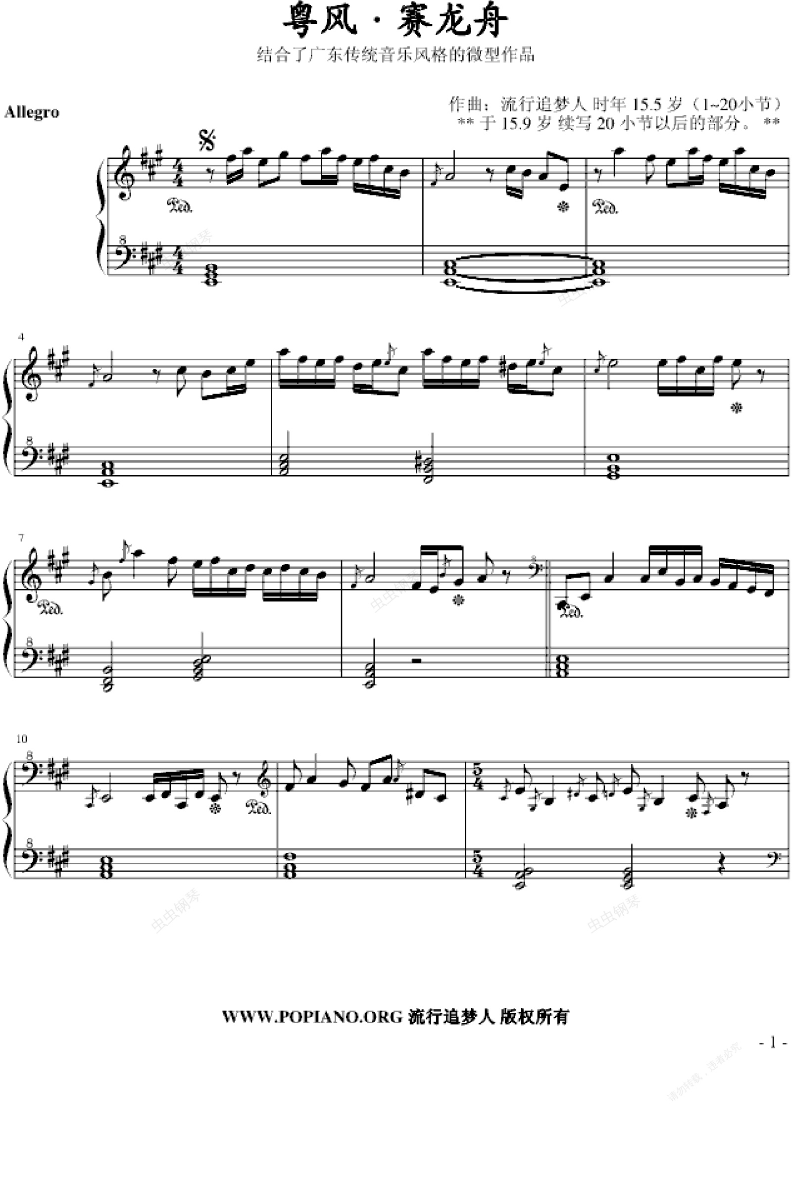 钢琴谱:粤风·赛龙舟