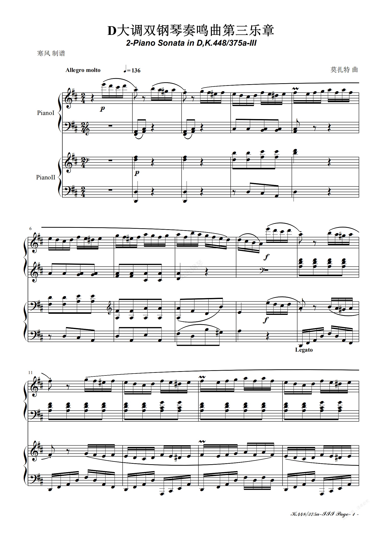 钢琴谱:莫扎特D大调双钢琴奏鸣曲K448第三乐章