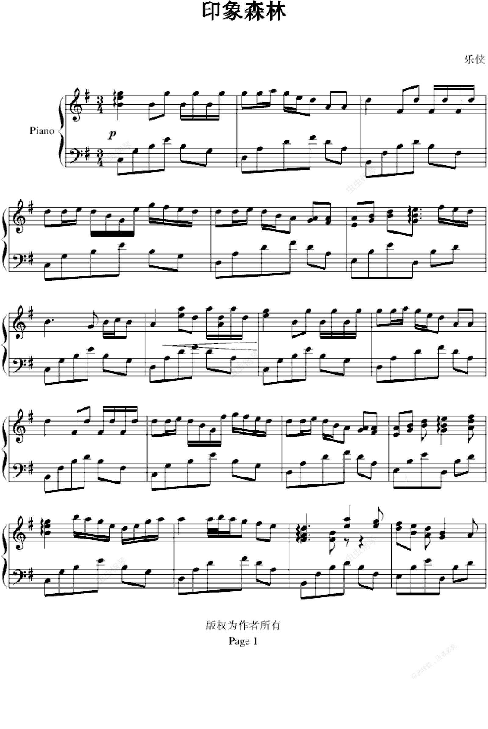 钢琴谱:印象森林
