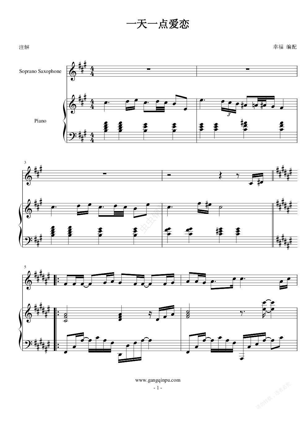 钢琴谱:一天一点爱恋