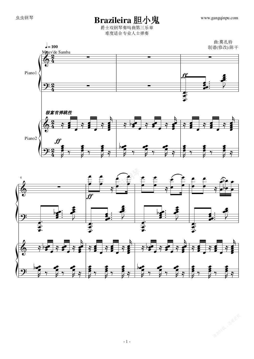 钢琴谱:爵士双钢琴奏鸣曲第三乐章