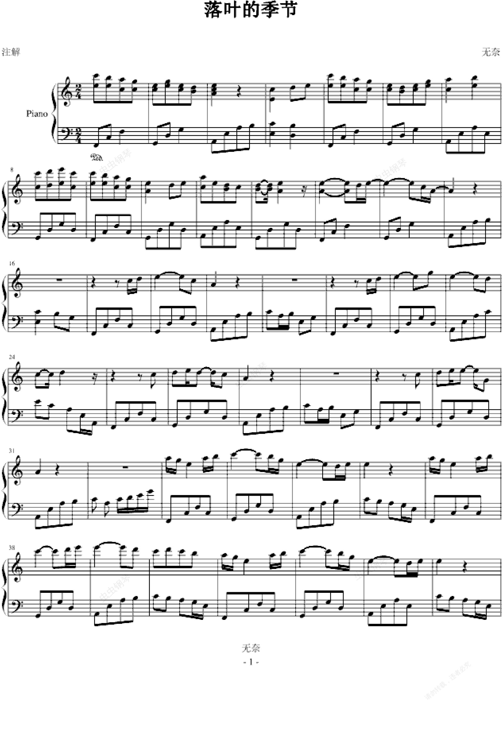 钢琴谱:落业季节