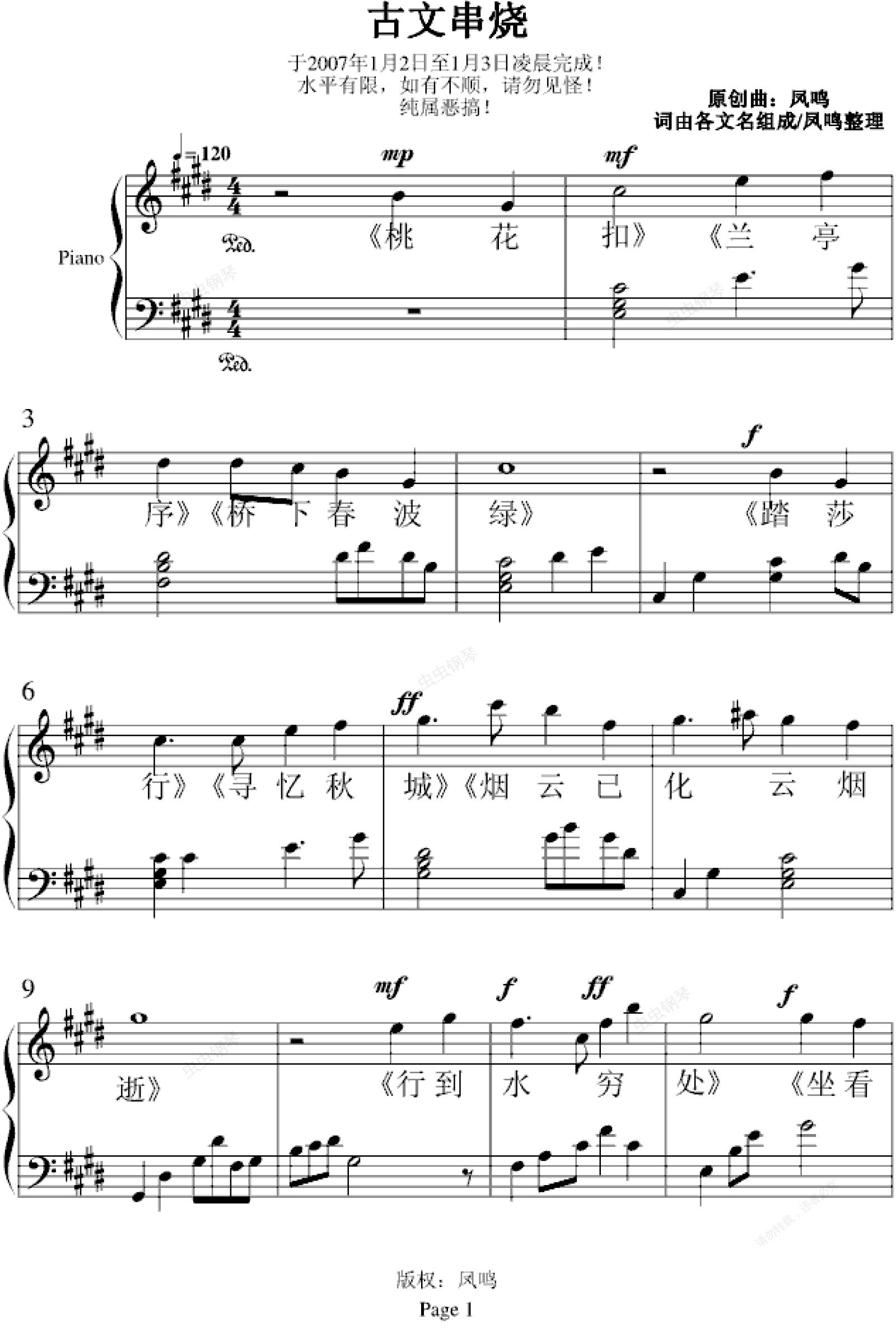 钢琴谱:古文串烧