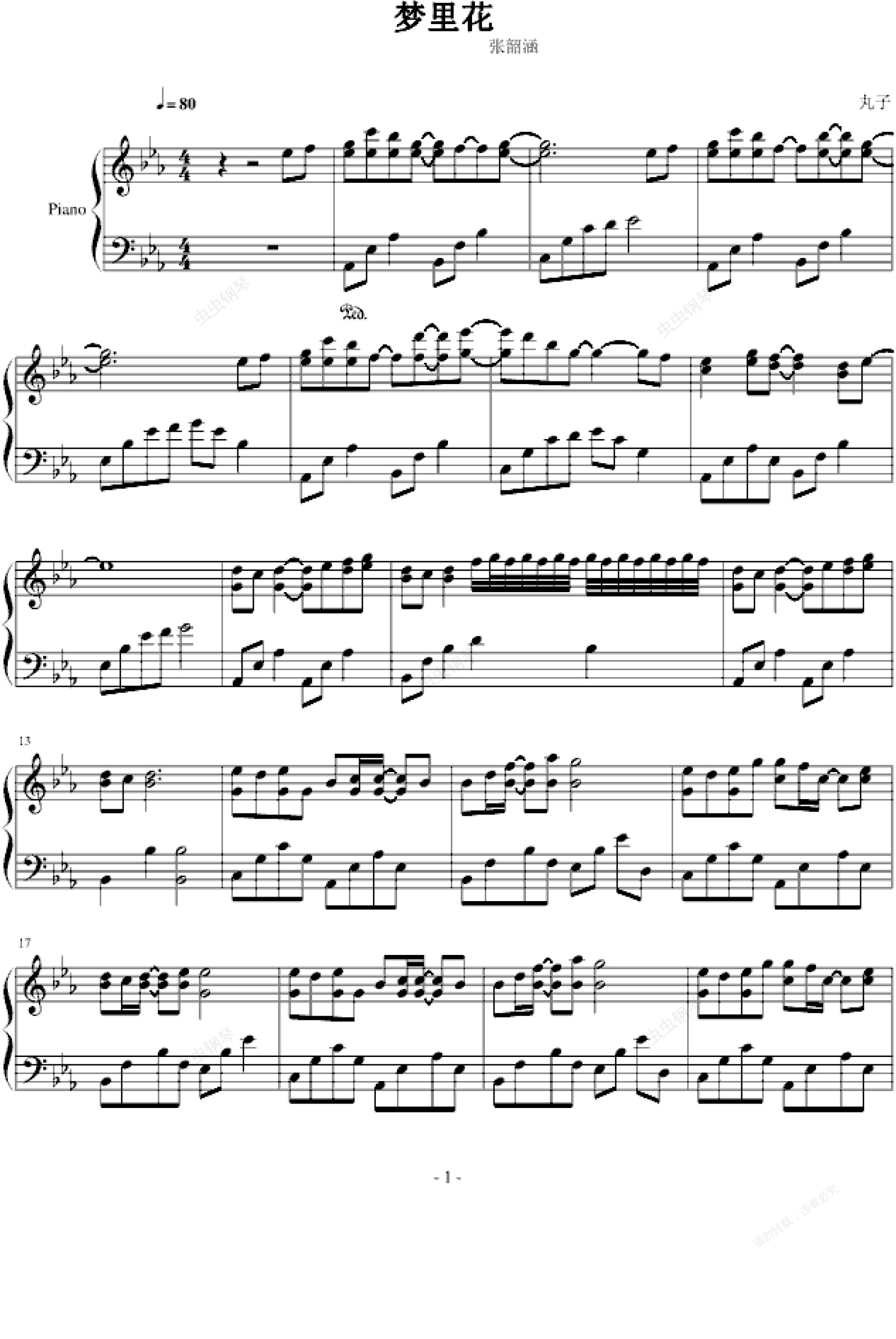 钢琴谱:梦里花