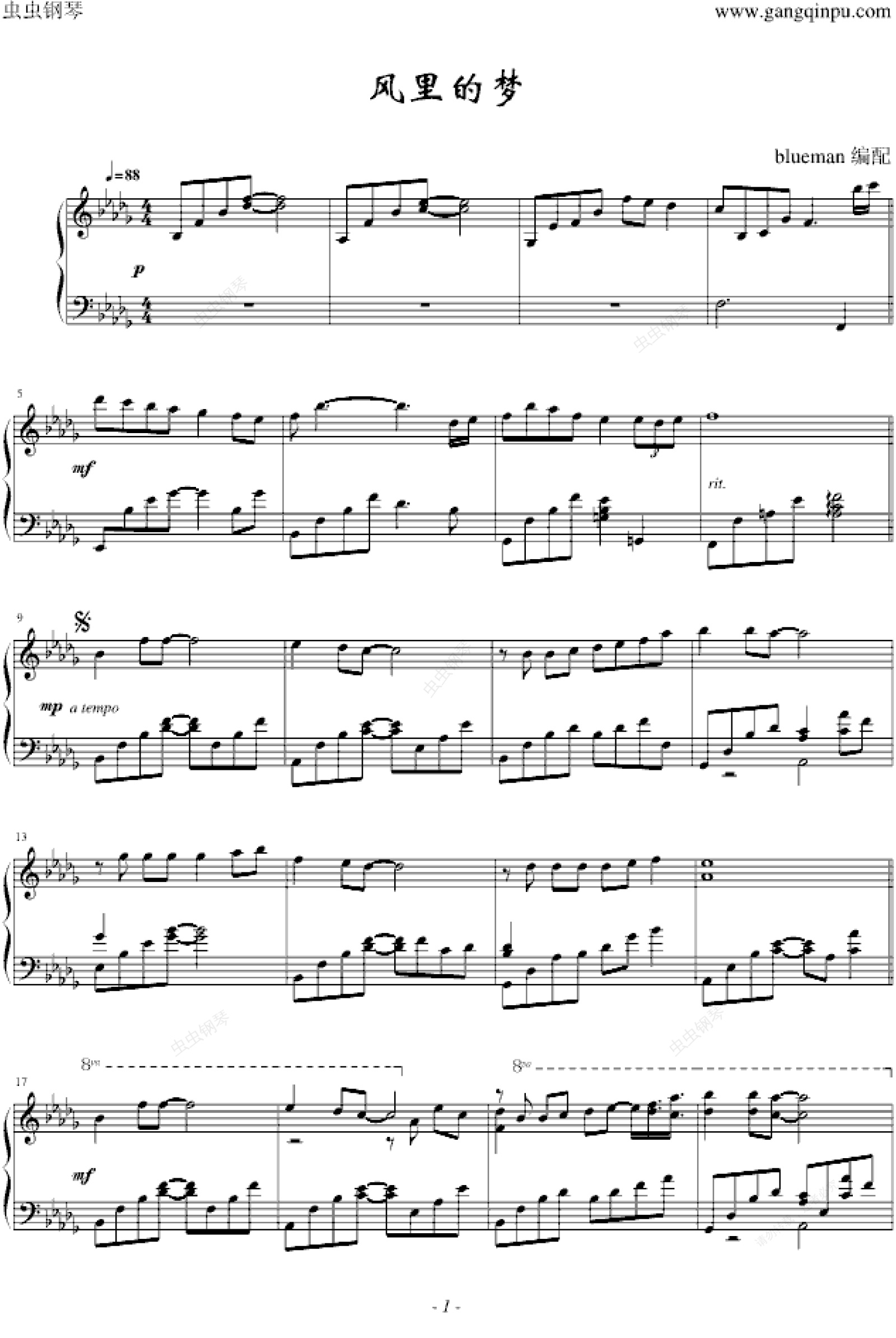 钢琴谱:风里的梦