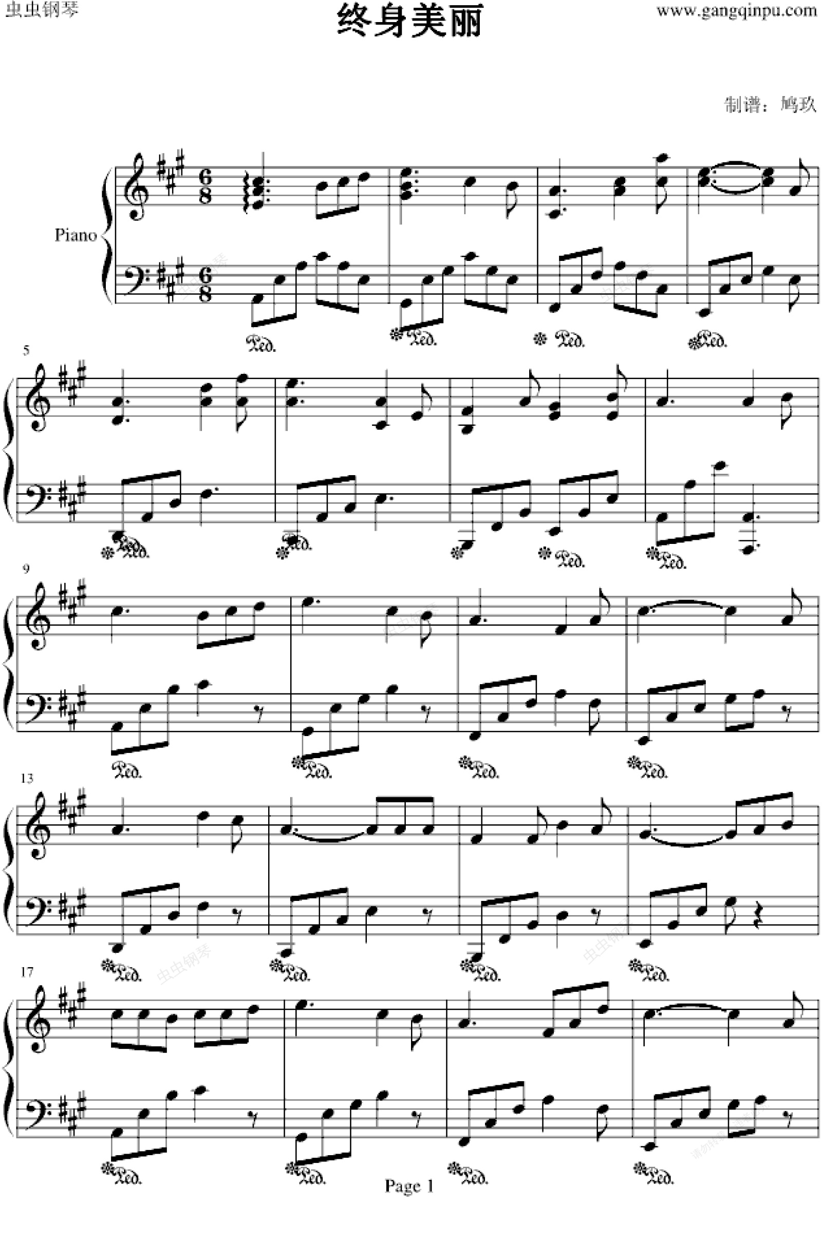 钢琴谱:终身美丽-鸠玖版