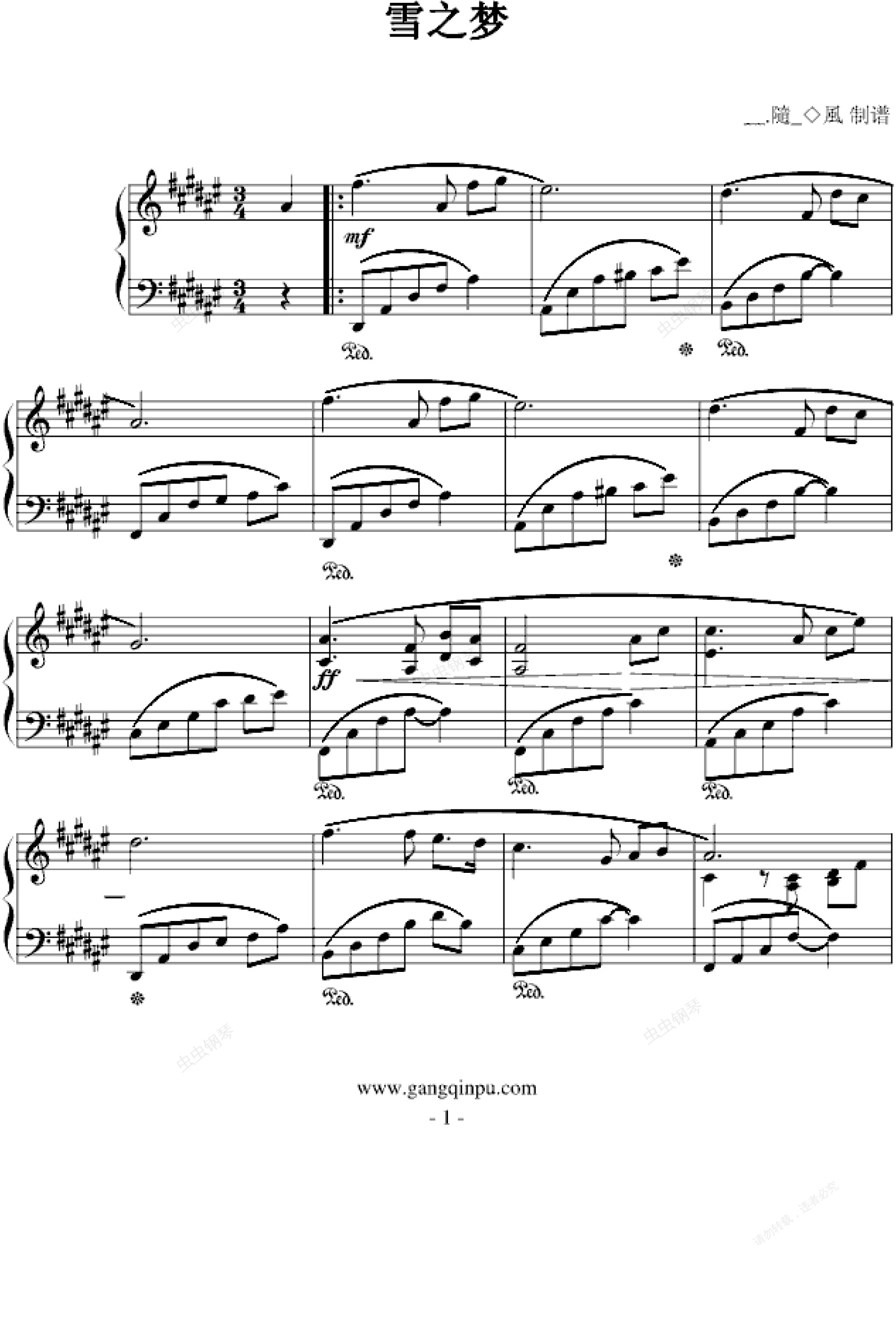 钢琴谱:雪之梦-﹏.隨_◇風版