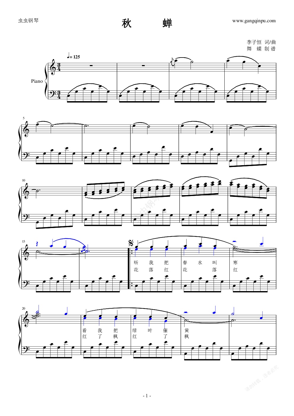 钢琴谱:秋蝉