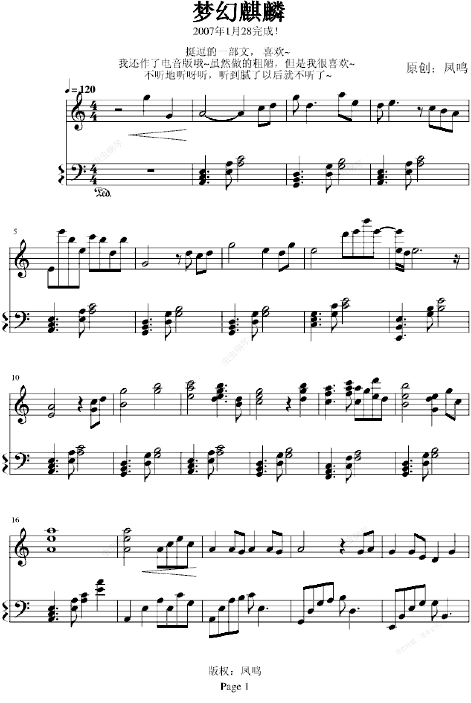 钢琴谱:梦幻麒麟