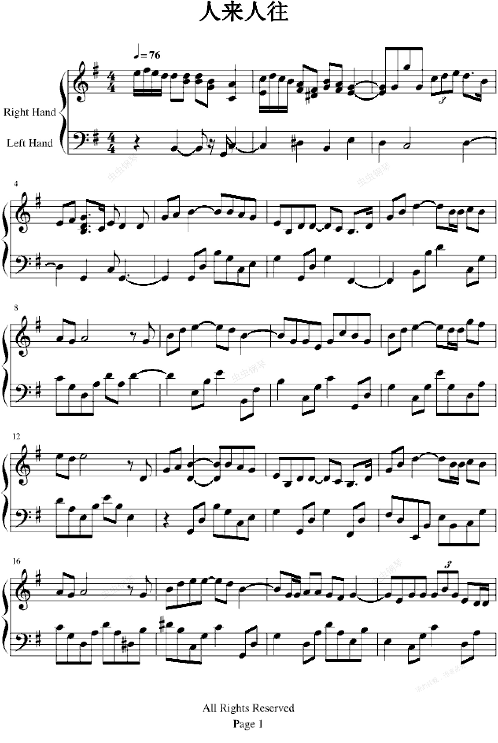 钢琴谱:人来人往