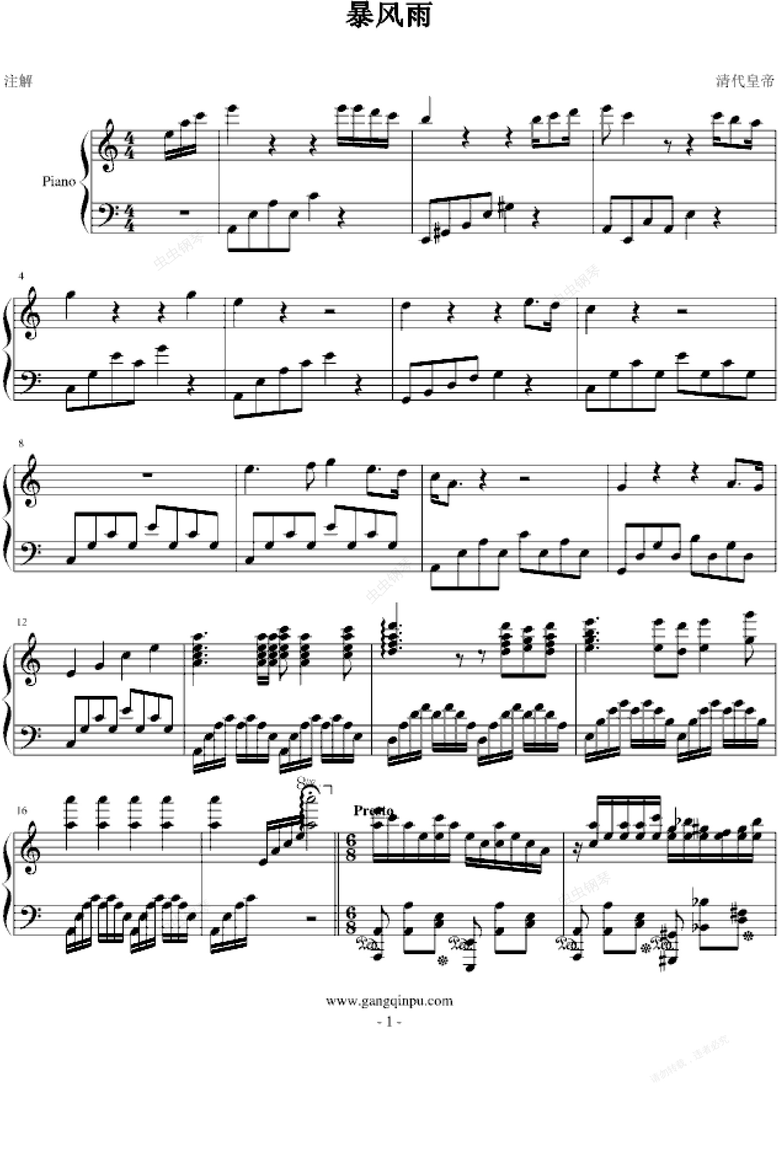 钢琴谱:暴风雨