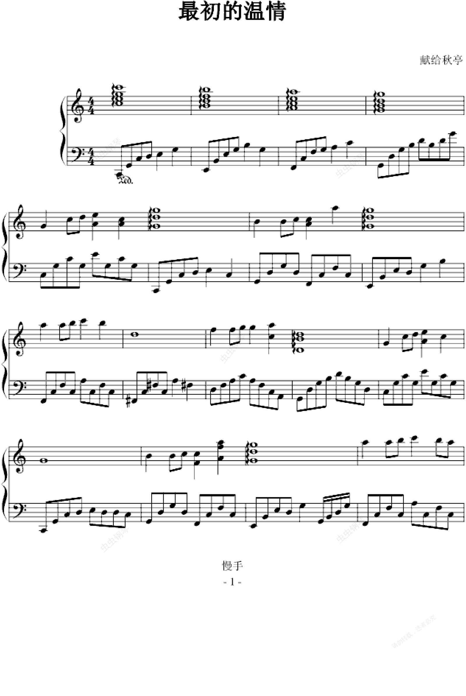 钢琴谱:最初的温情
