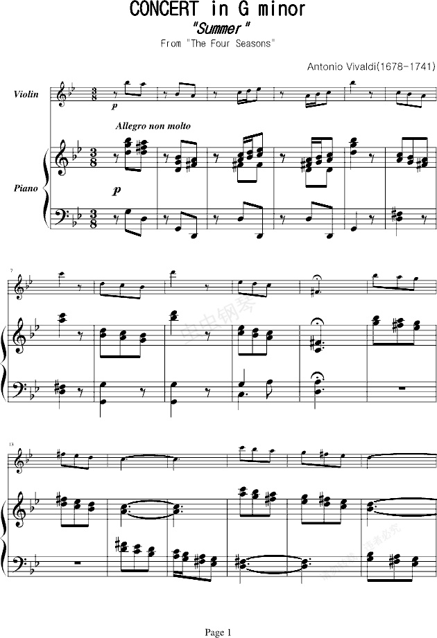 钢琴谱:四季·夏-(小提琴/钢琴)