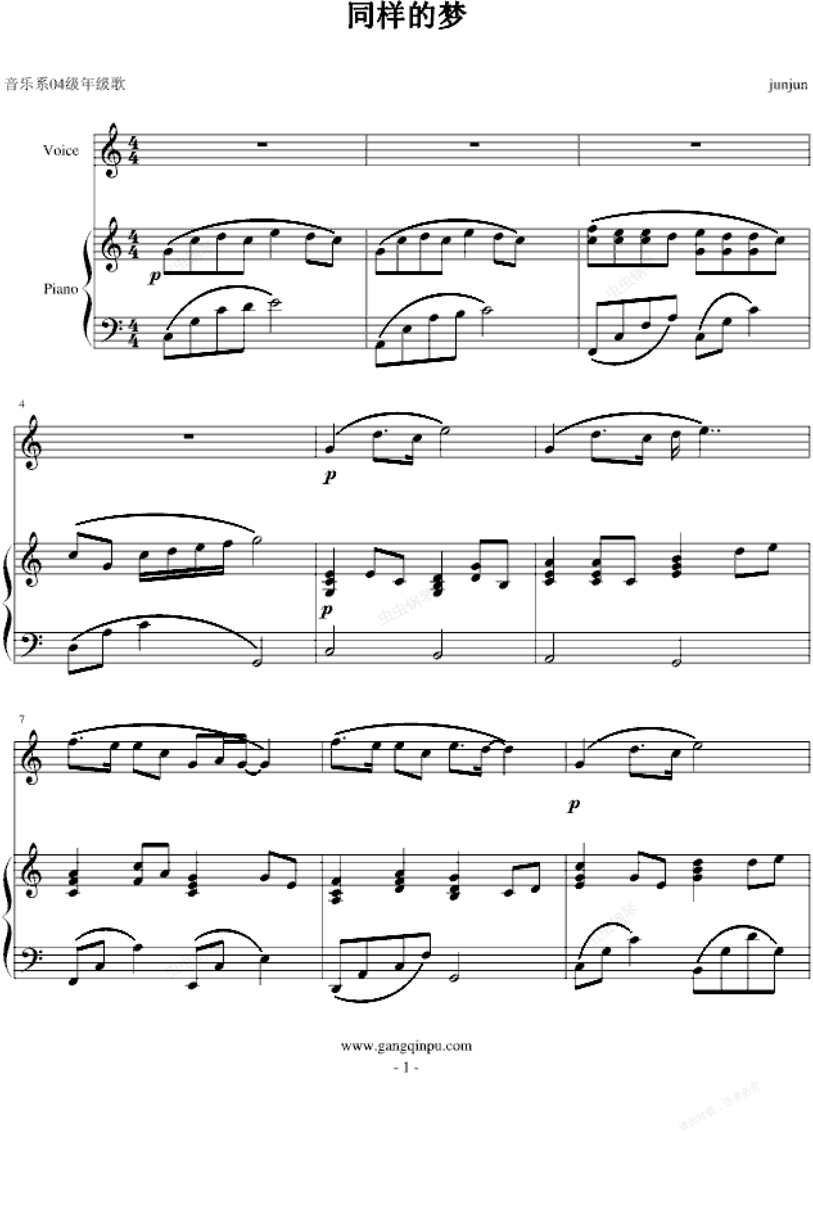 《同样的梦》是我在06年为我们年级音乐会专门创作的年级级歌,这首歌也作为音乐会主题曲由全年级同学合唱,现场也十分感人。 歌词如下 同样的梦 同样的心 一起唱出这旋律 打开你我的心 同样的心 同样的情 年轻的心不言弃 让爱穿过天际 爱会让世界转动 就象雨后的彩虹 让我们一起飞向最高的天空 哦 我们一起手拉手 飞向更高的天空 歌声带着笑容 拥抱明天的梦 我们一起手拉手 创造明天的感动 今天的笑容 就在此刻 铭刻
