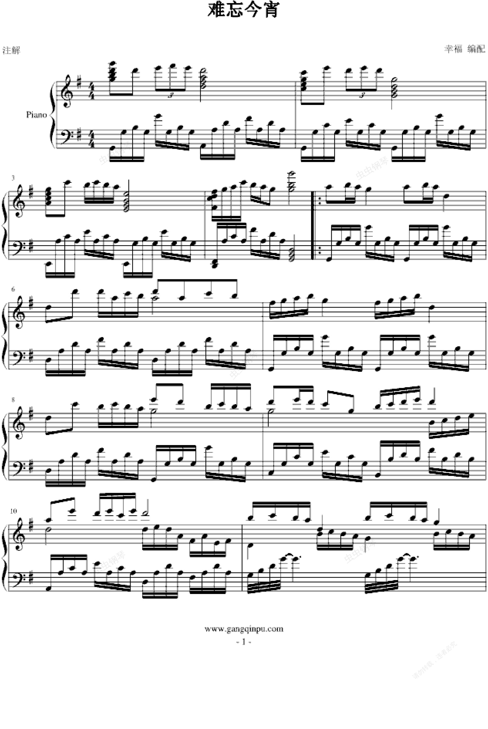 钢琴谱:难忘今宵