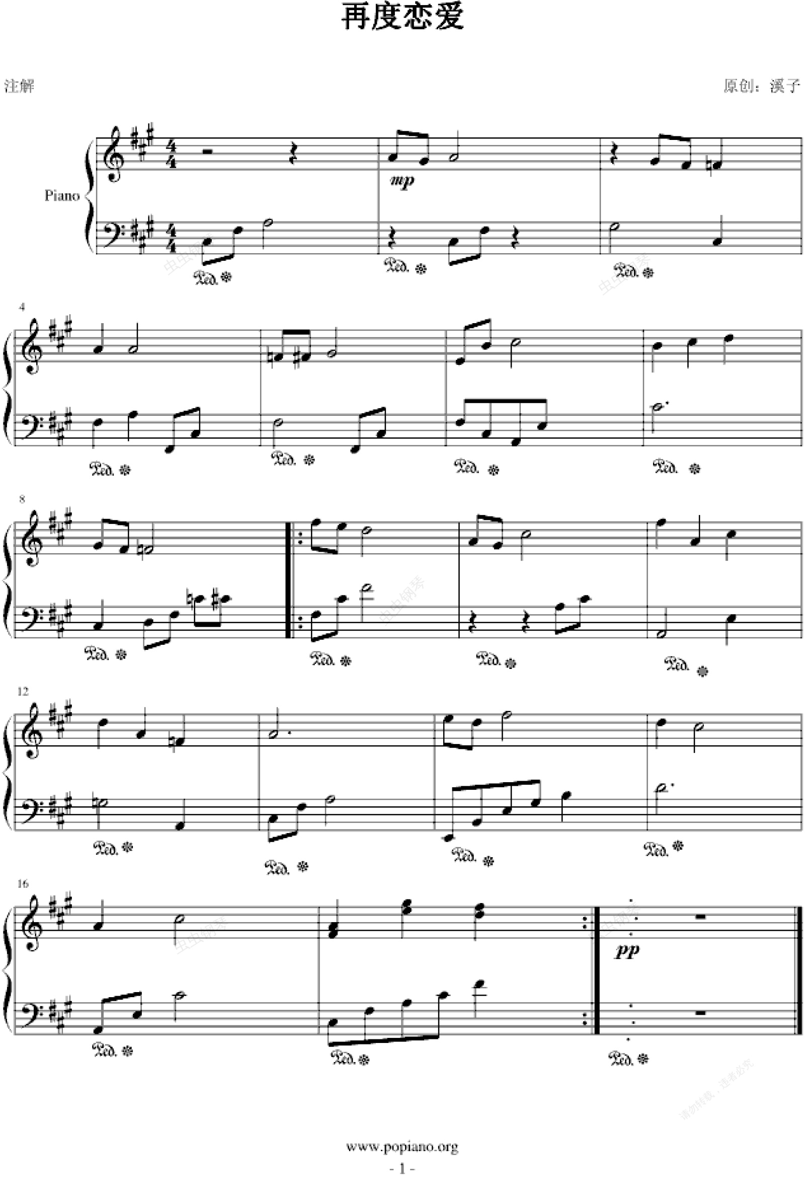 钢琴谱:再度恋爱