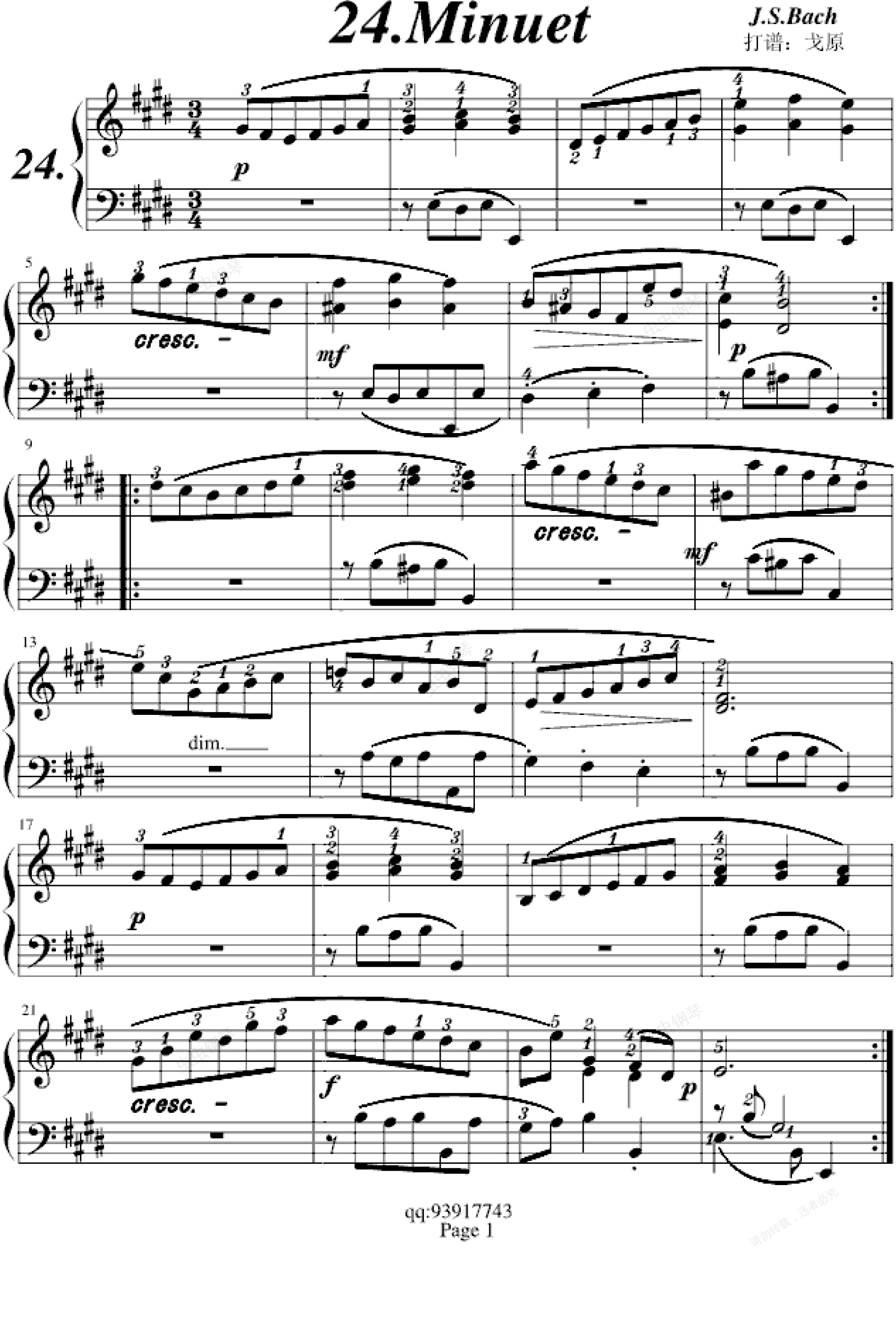 钢琴谱:巴赫初步II No.24 Minuet