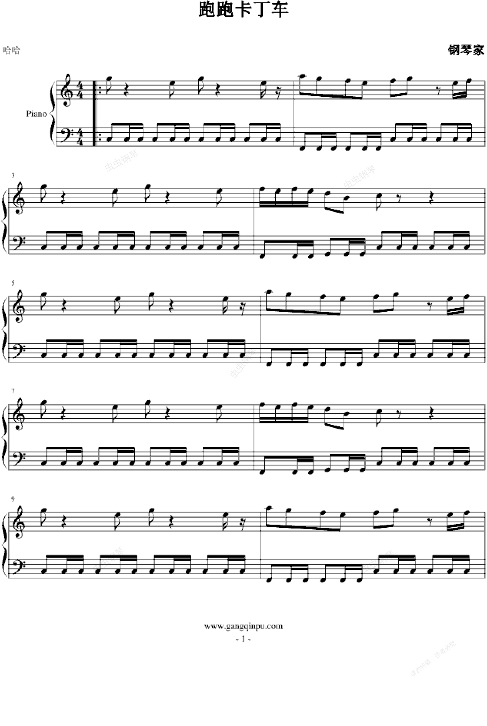 钢琴谱:跑跑卡丁车