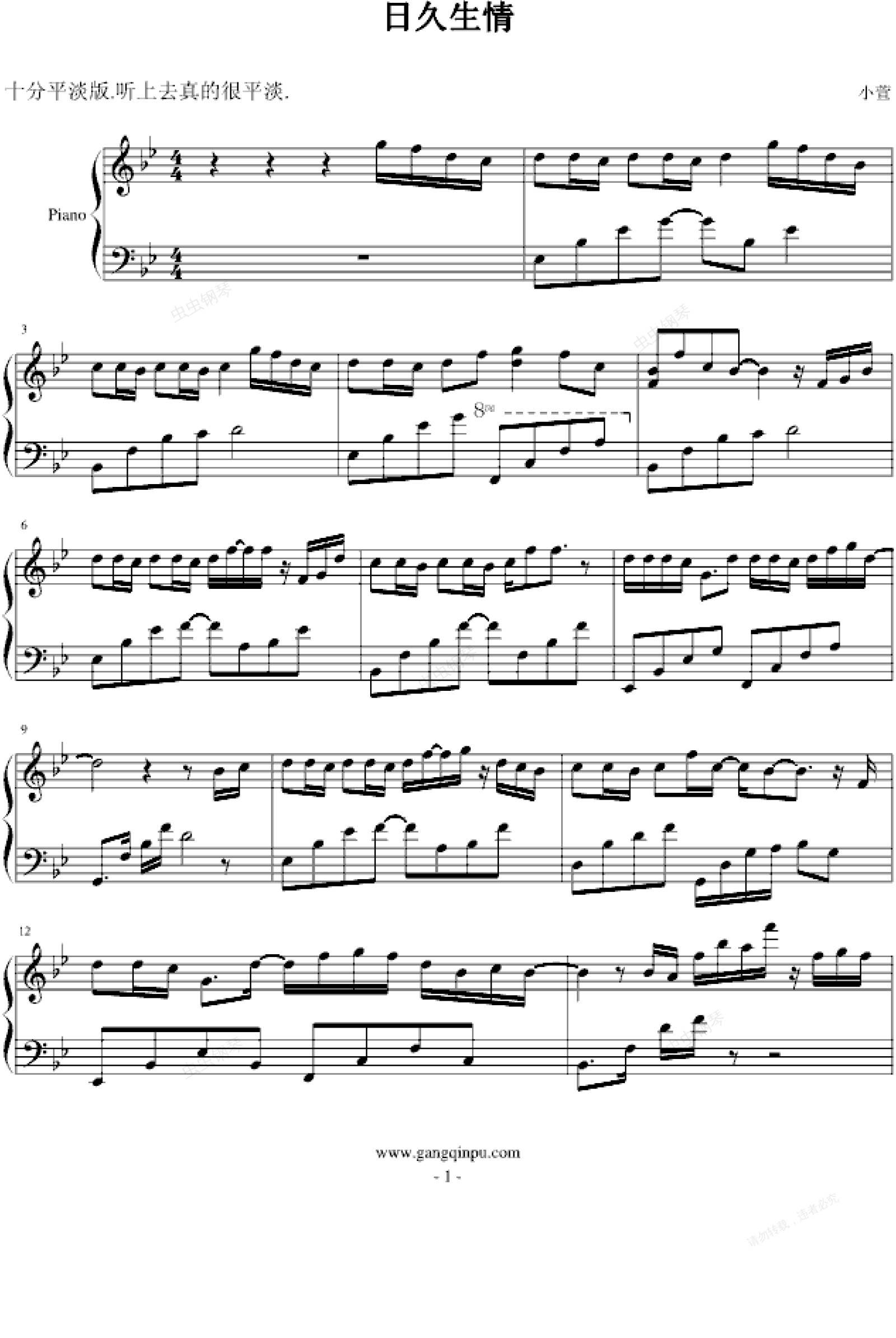 钢琴谱:日久生情