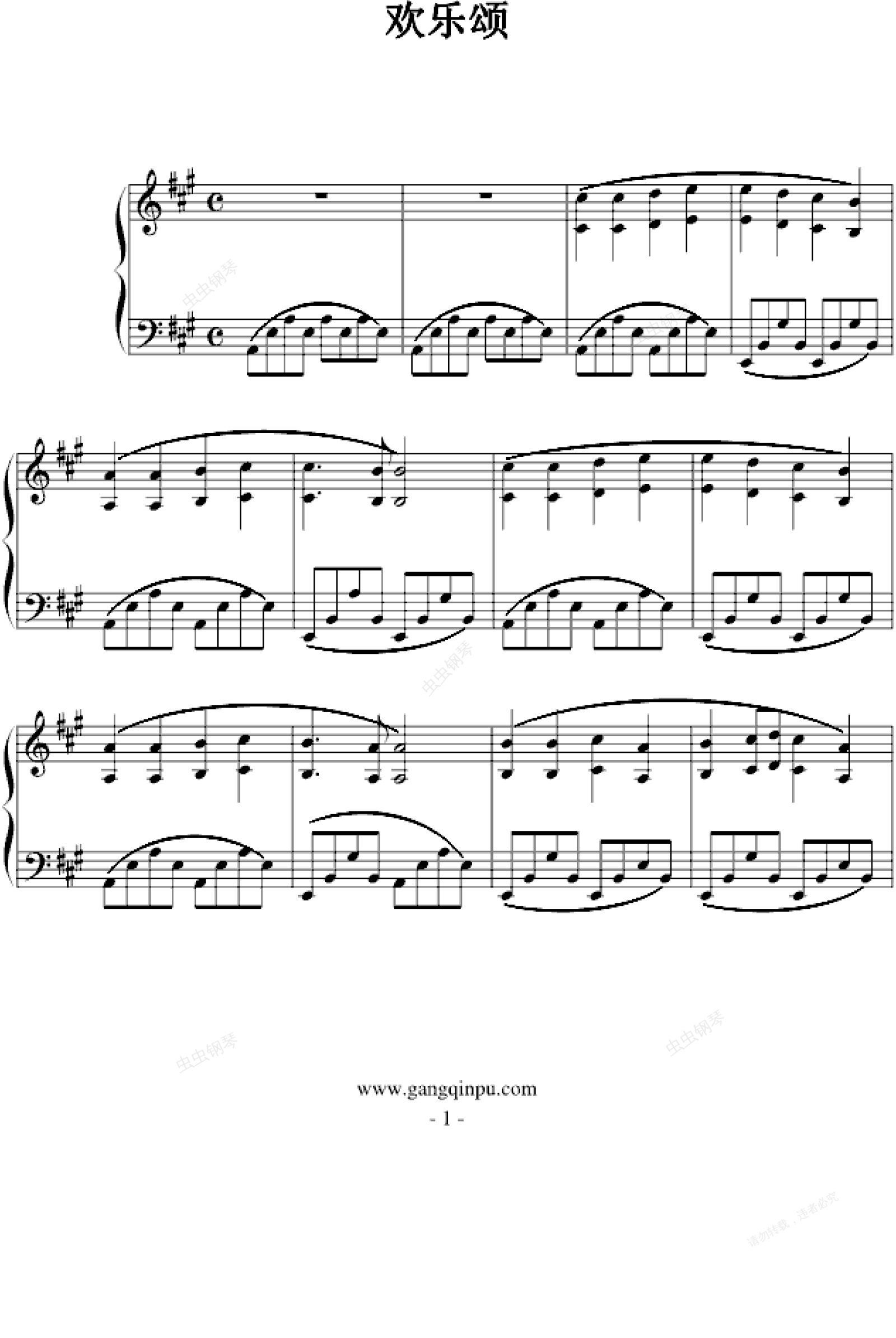 钢琴谱:欢乐颂-克莱德曼演奏版本