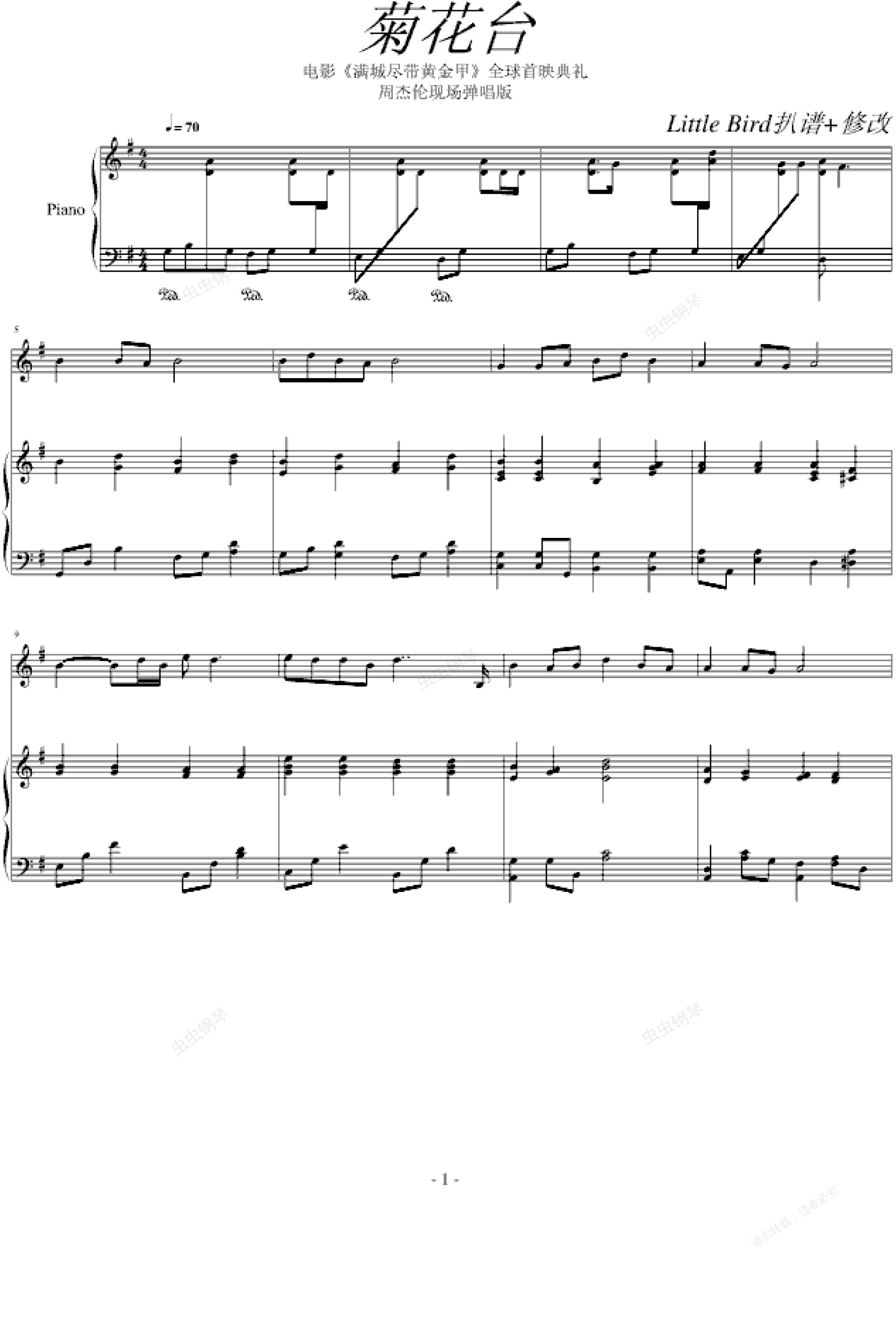 钢琴谱:菊花台-《黄金甲》首映弹唱