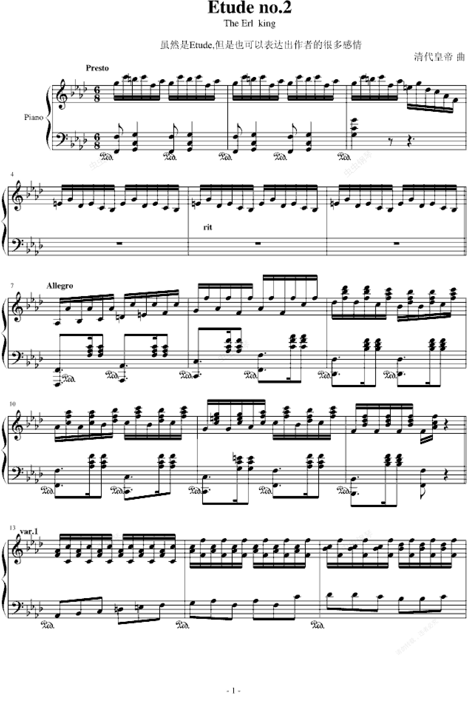 钢琴谱:练习曲