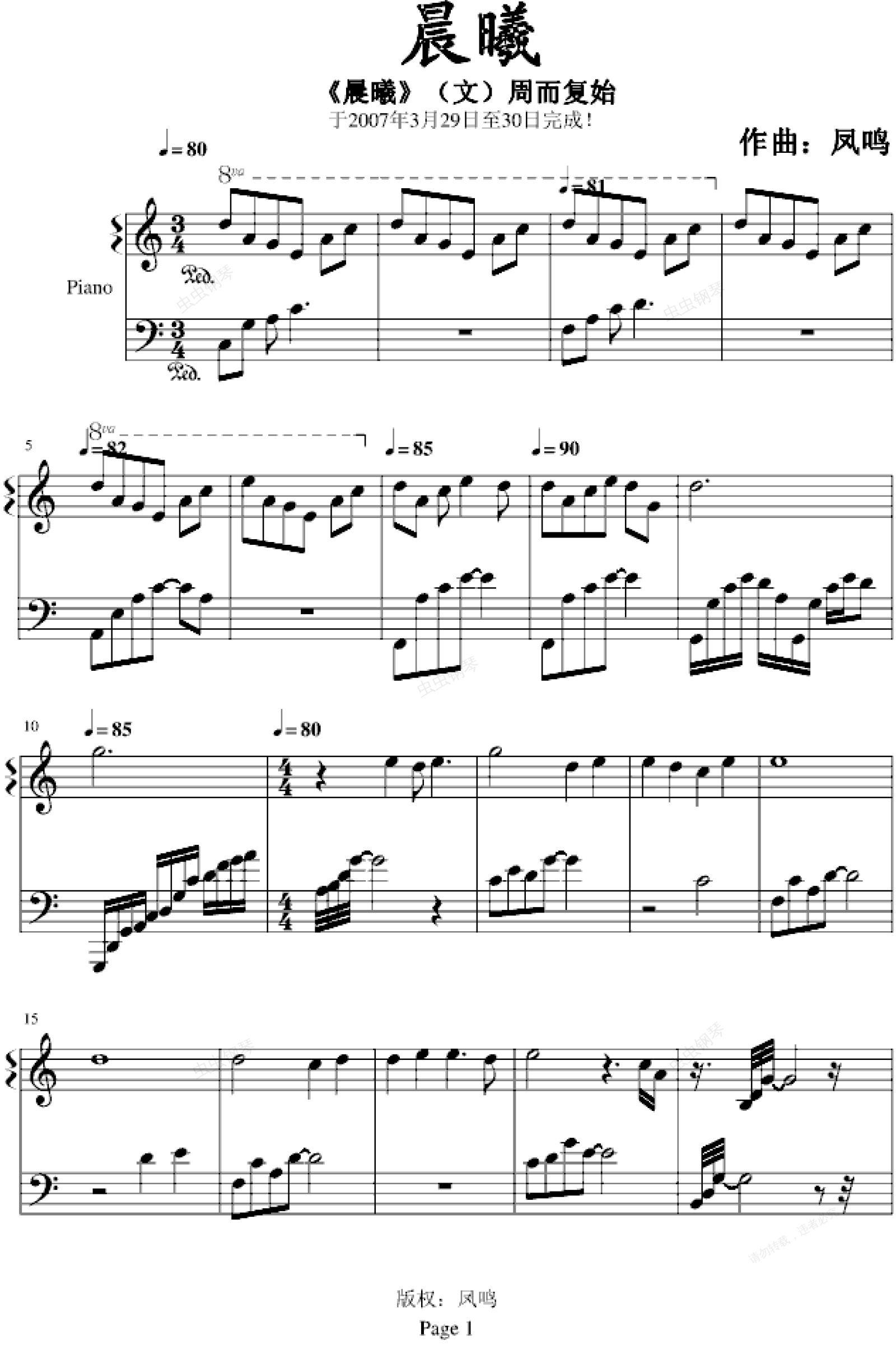 钢琴谱:晨曦