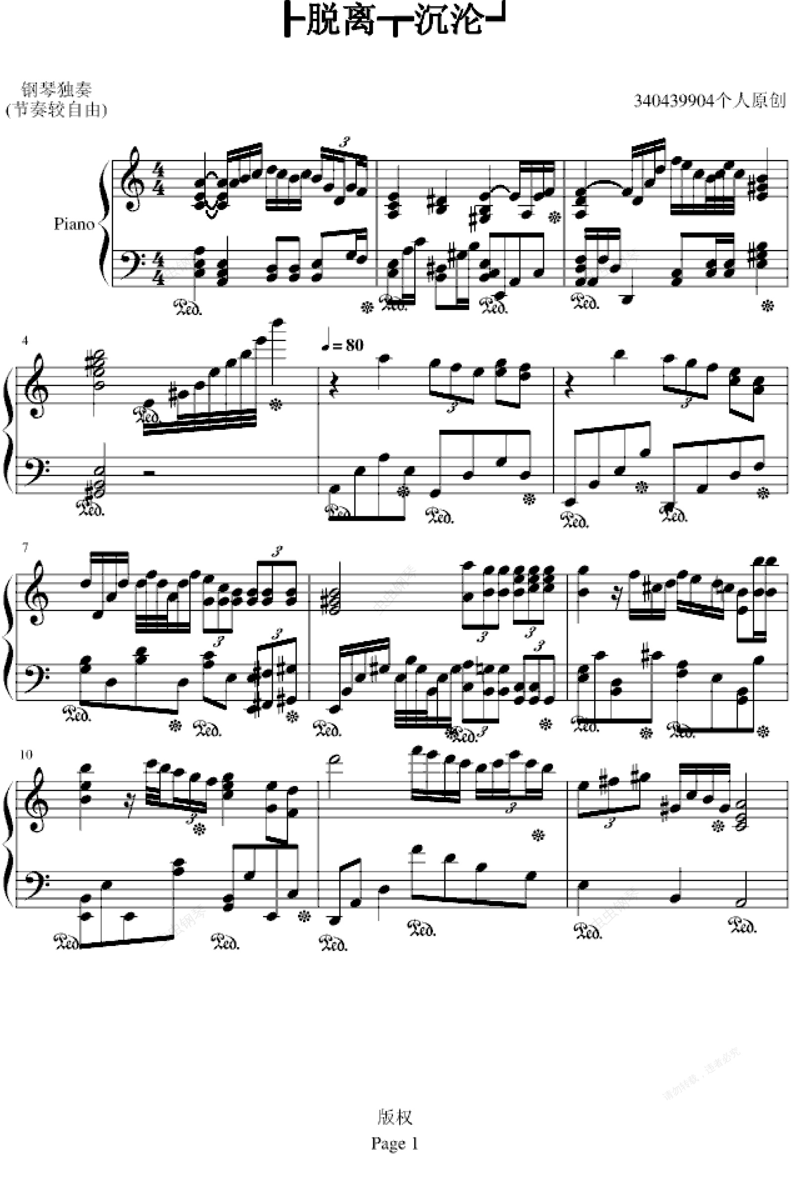 钢琴谱:┠脱离┲沉沦┙