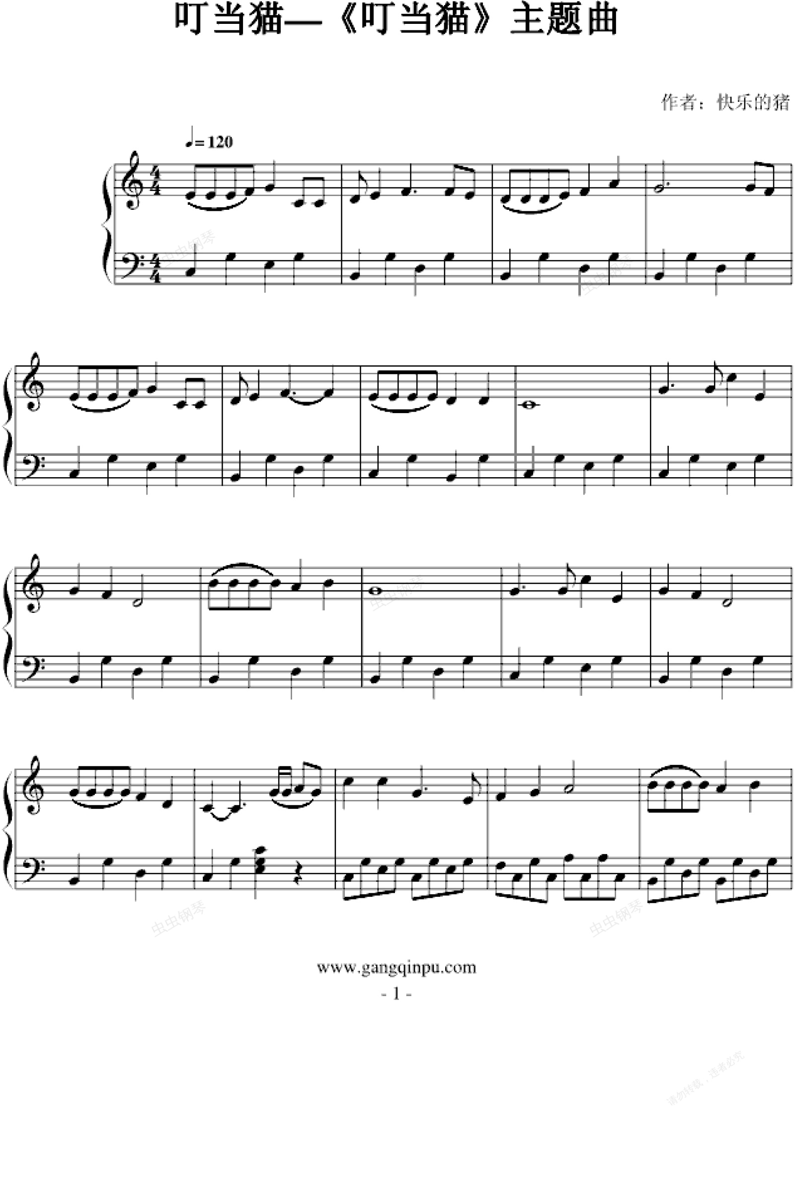 钢琴谱:叮当猫-主题曲