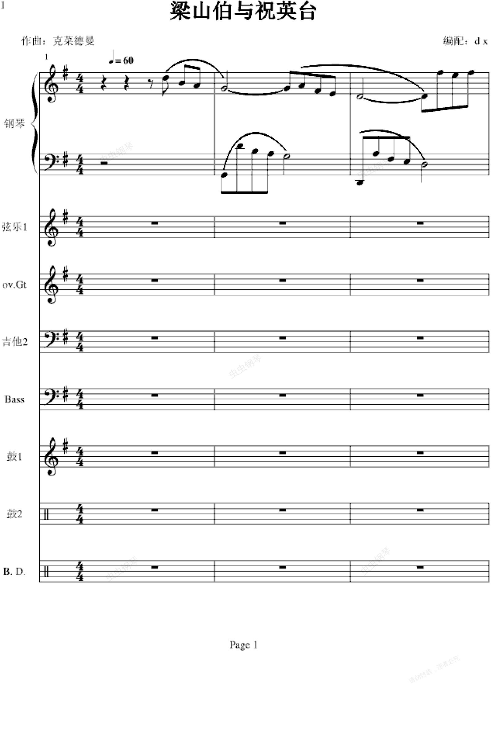 钢琴谱:梁祝-(电声乐队总谱)