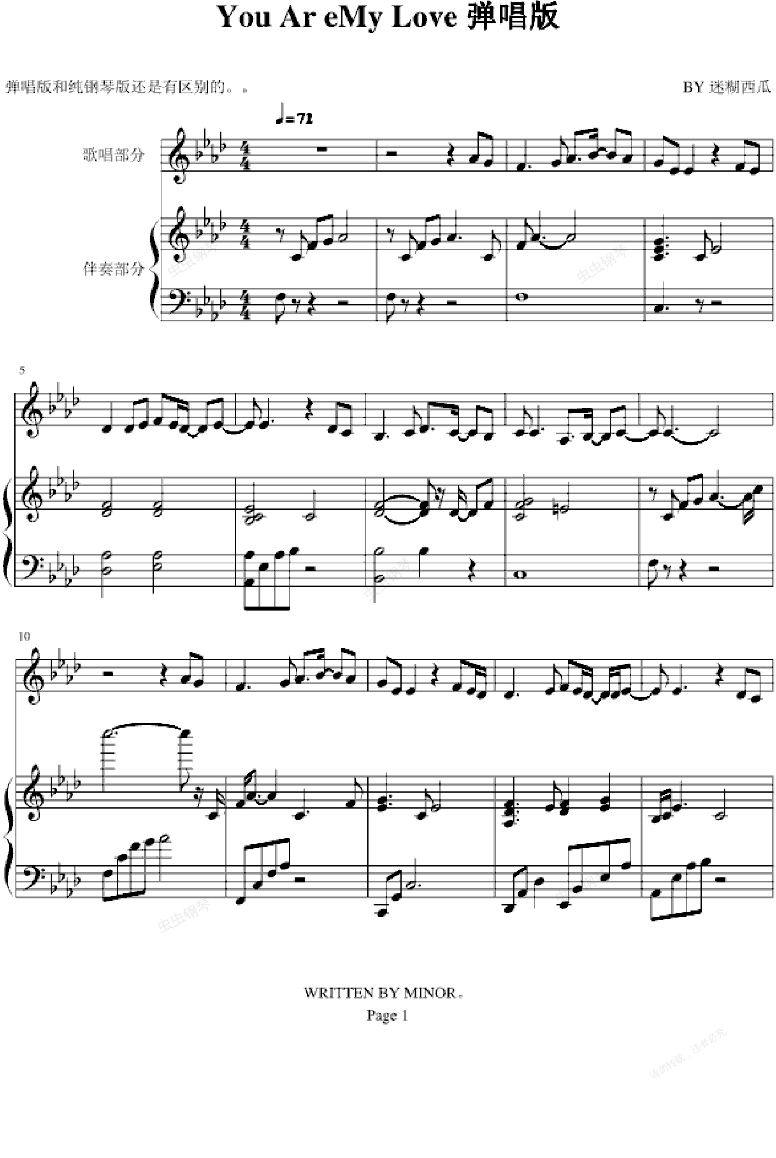 钢琴谱:You Are My Love-弹唱版