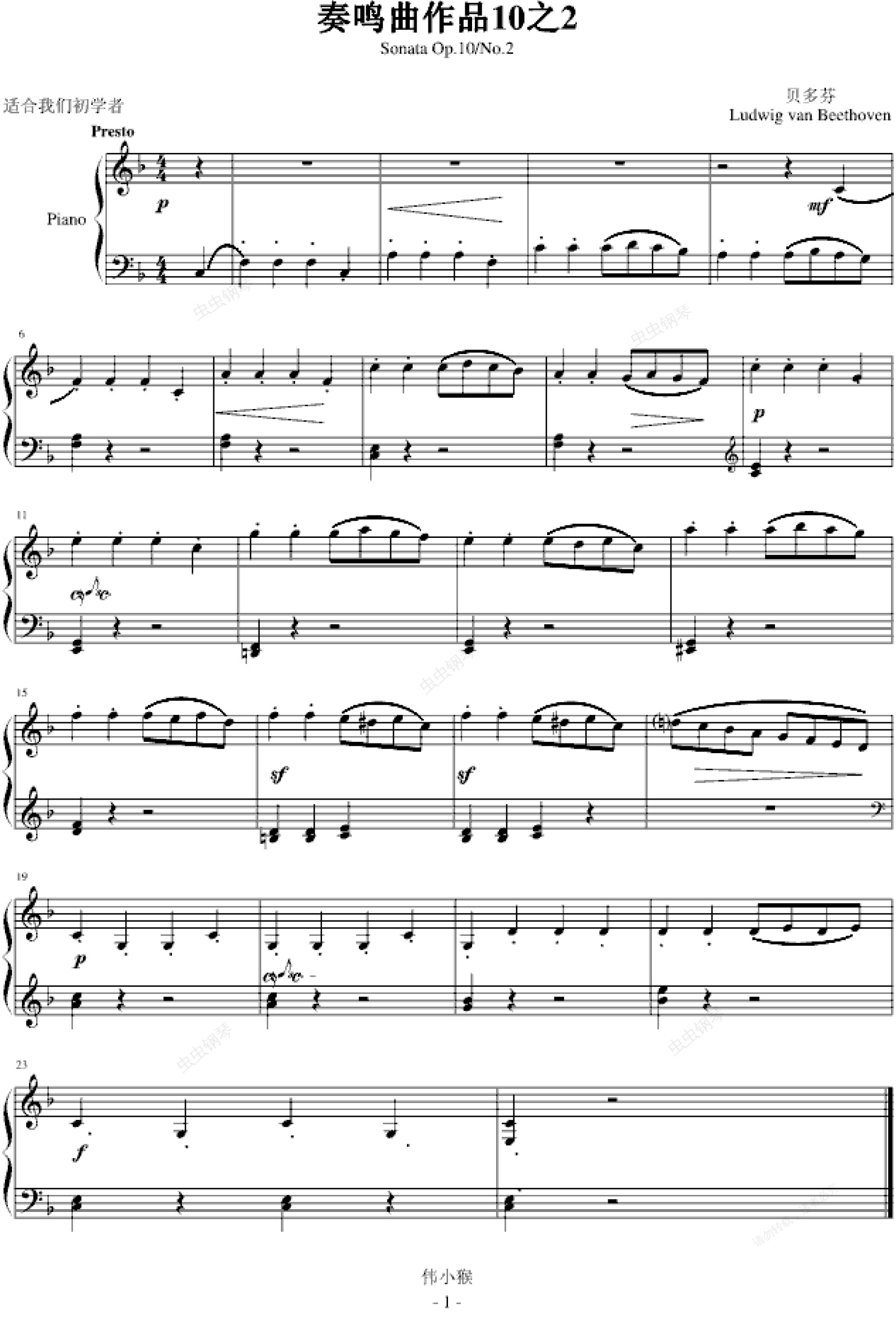 钢琴谱:奏鸣曲作品10之2 -简易版