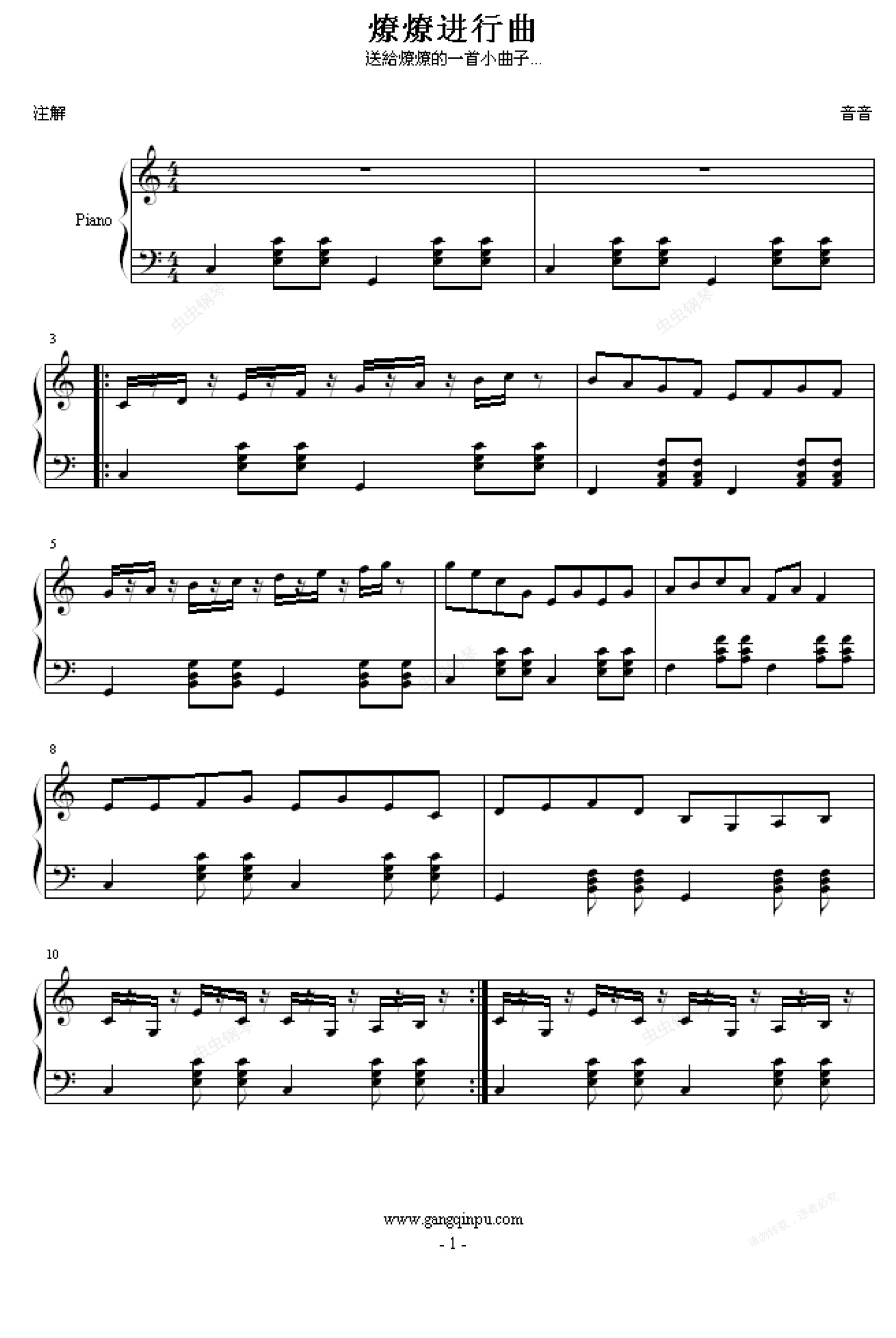 钢琴谱:燎燎进行曲