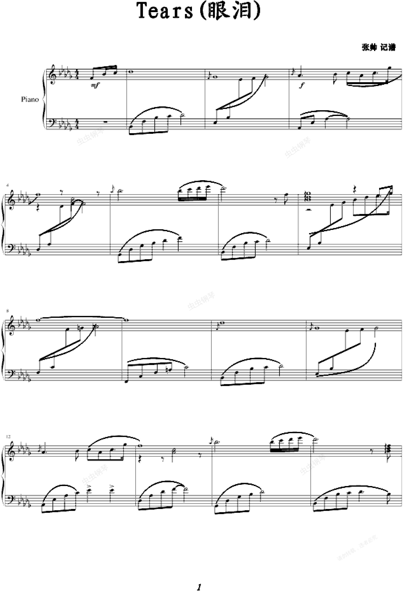 钢琴谱:Tears -完美-帅版