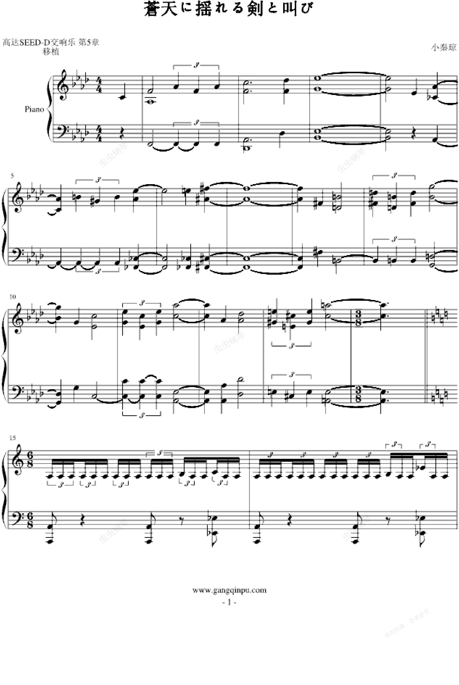 钢琴谱:高达SEED-D交响组曲第5章 钢琴版
