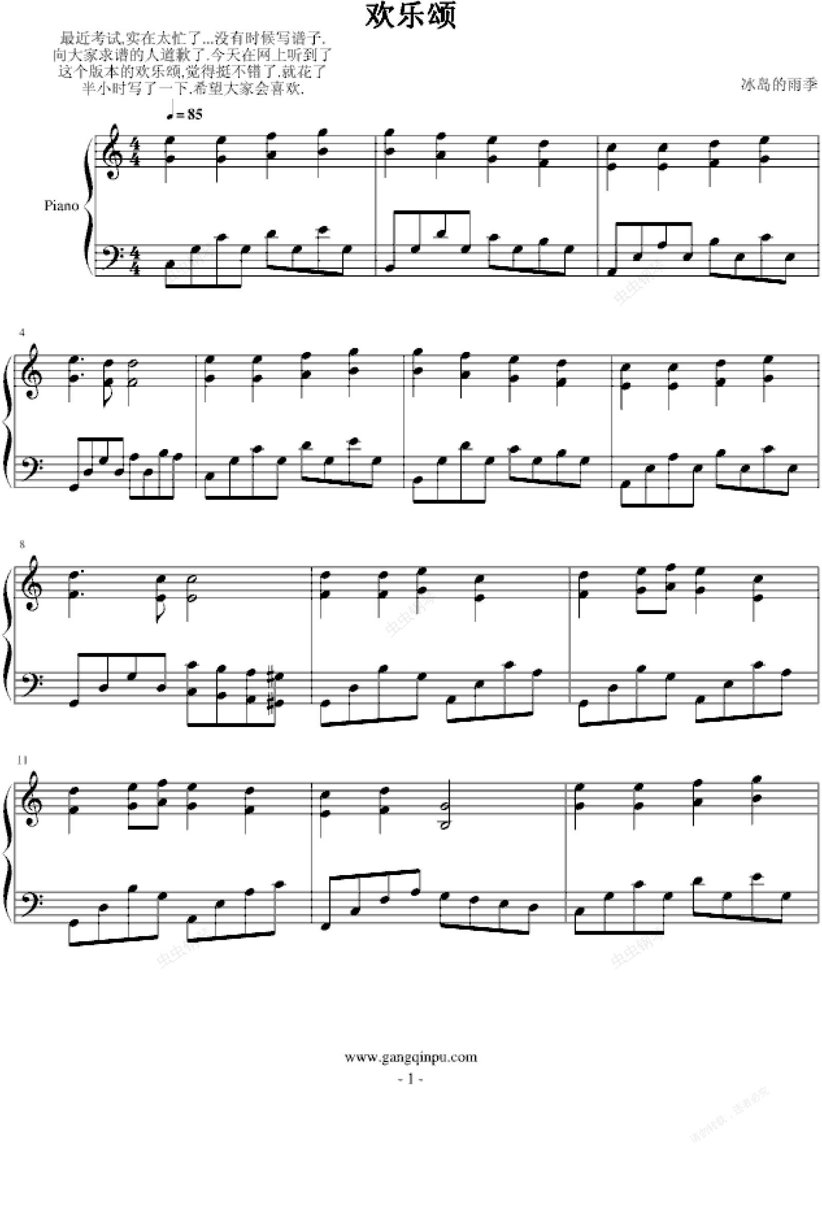 钢琴谱:欢乐颂-(简易右手6度练习歌)