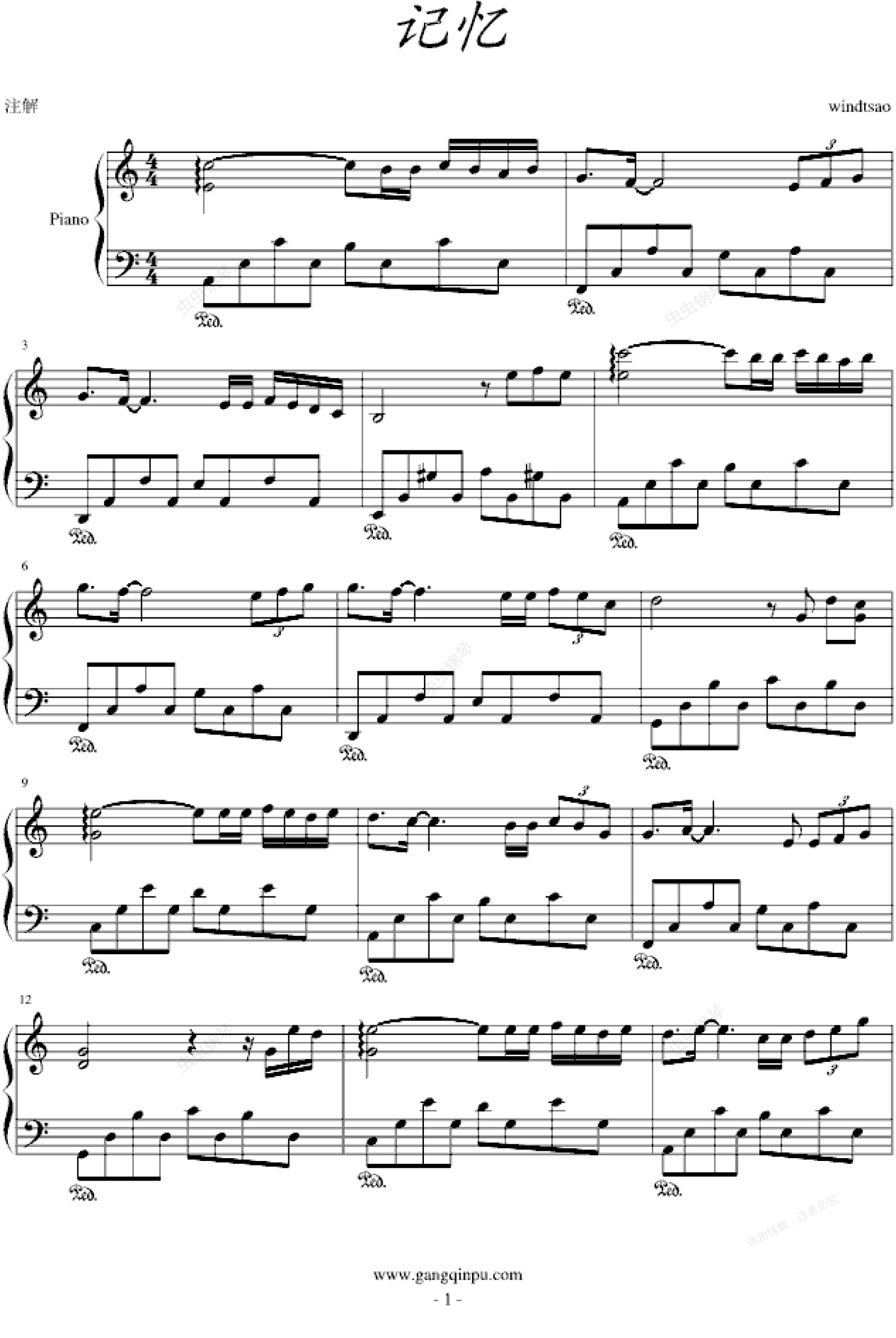 钢琴谱:记忆