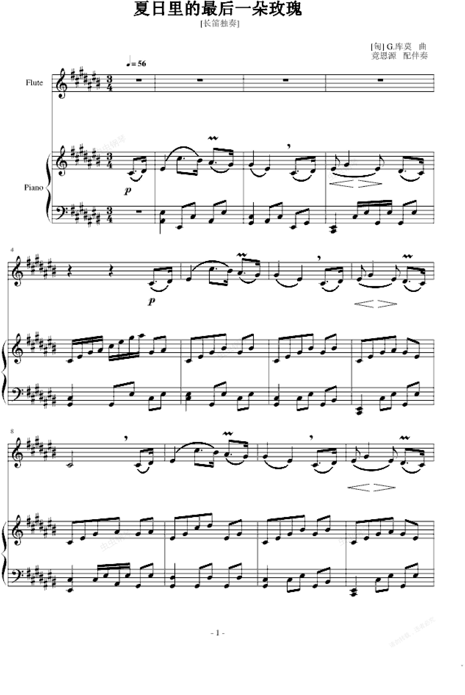 钢琴谱:夏日里的最后一朵玫瑰